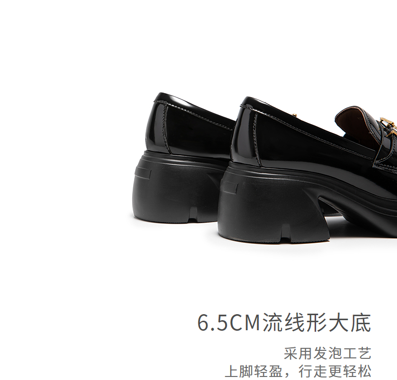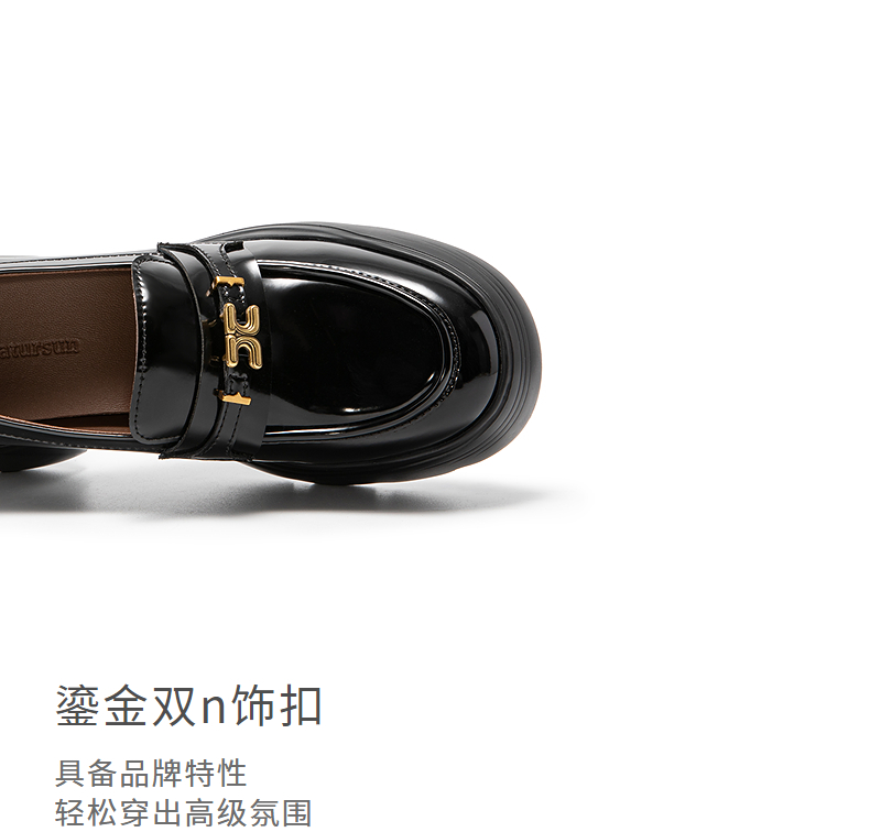 natursun厚底乐福鞋女英伦风增高百搭深口小皮鞋单鞋N25426086