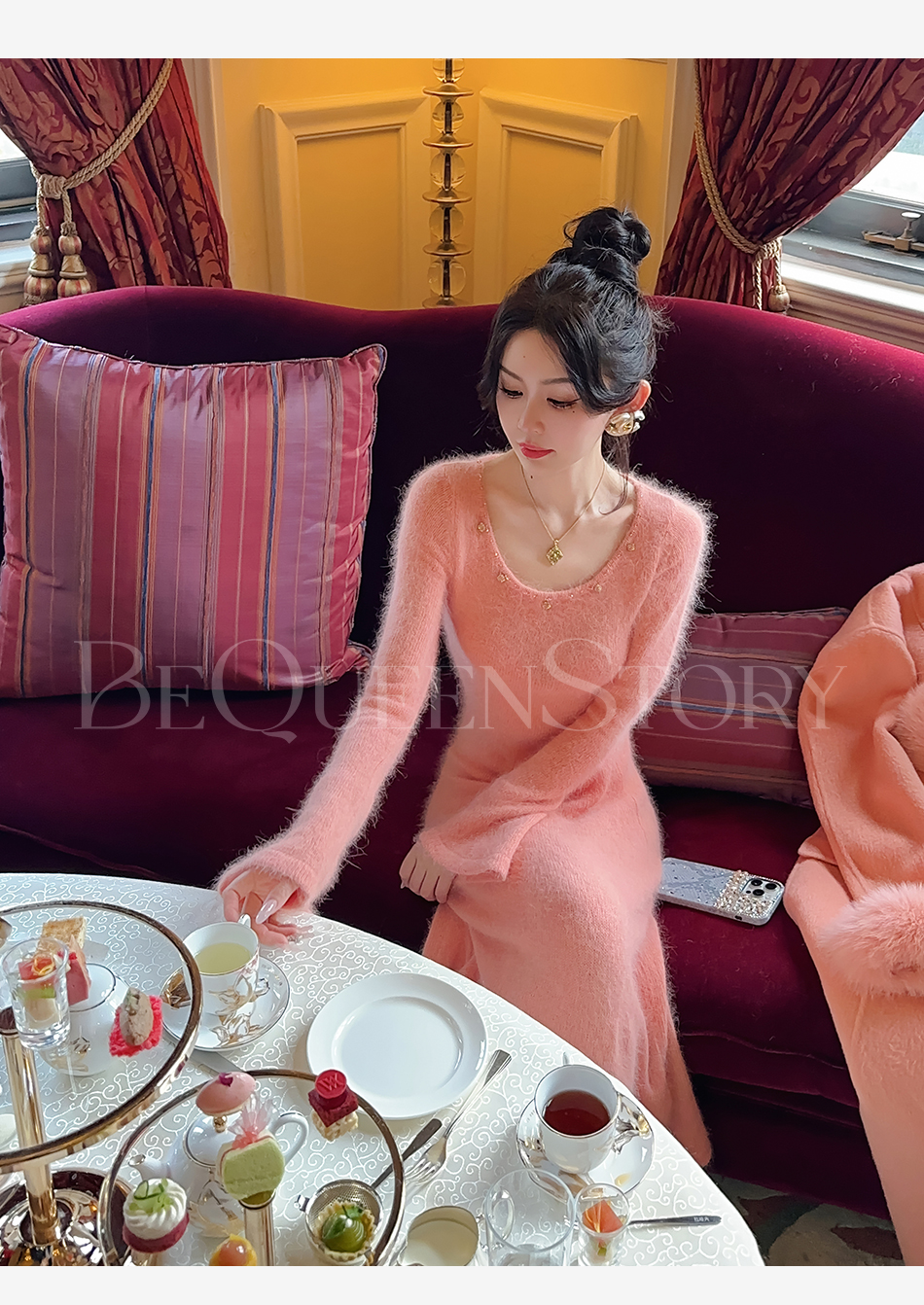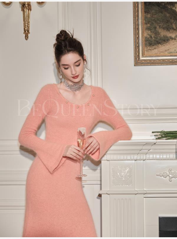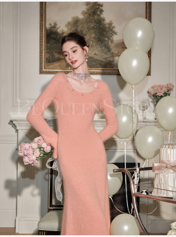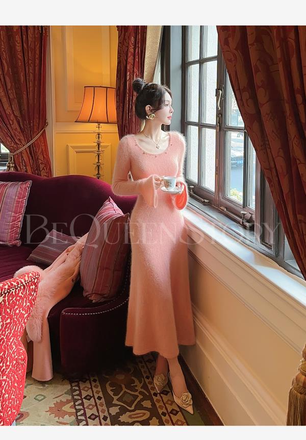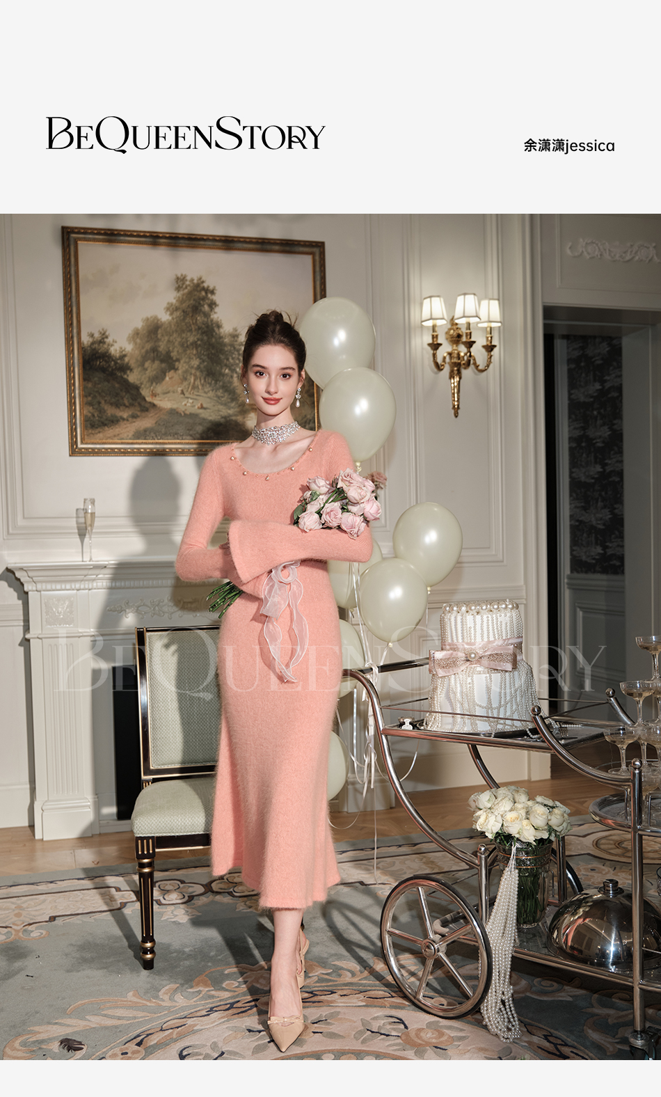 BeQueenStory【柔光曲线】气质柔软安哥拉兔毛显瘦U领鱼尾连衣裙女