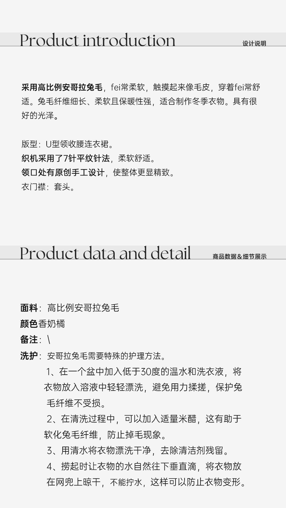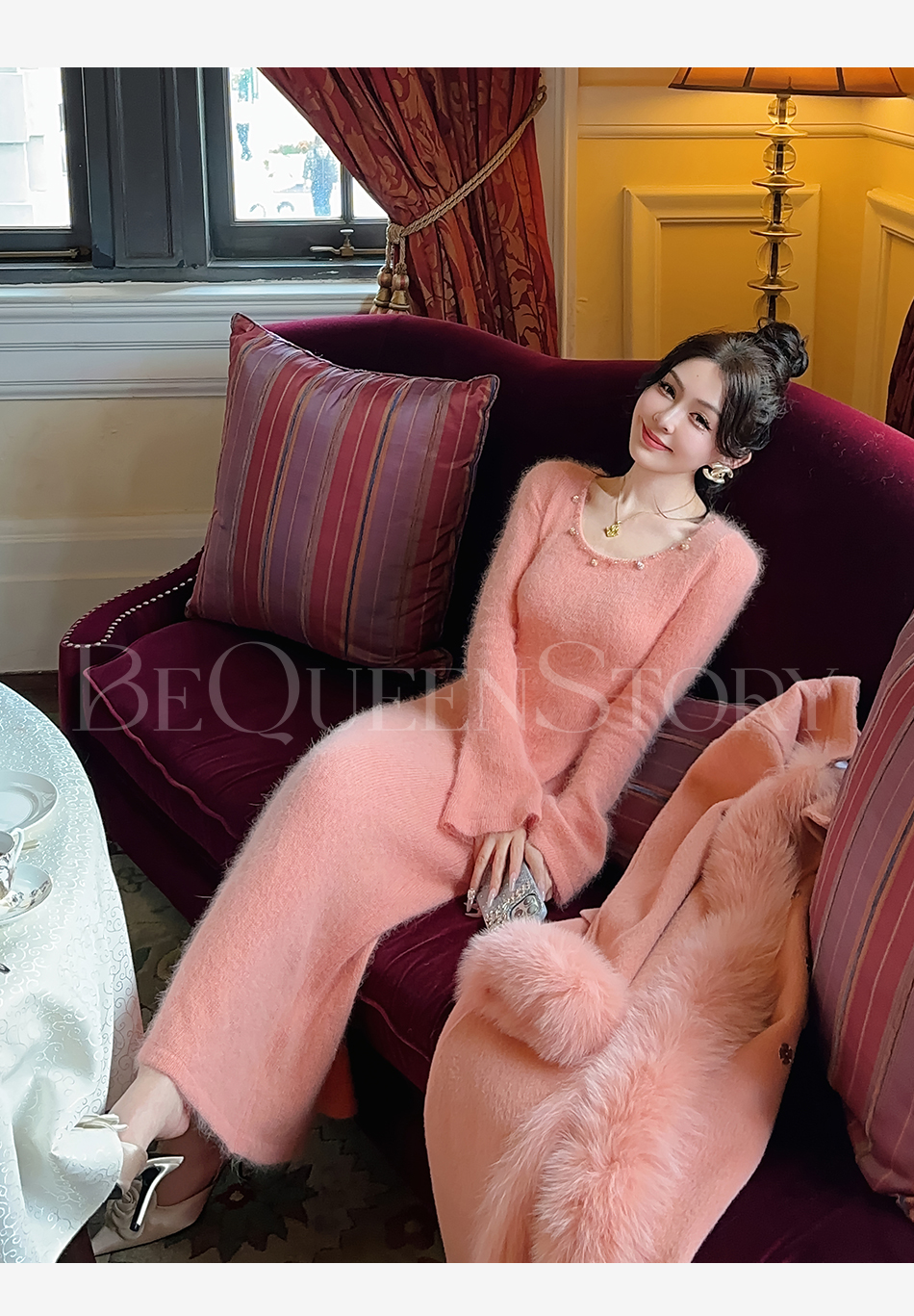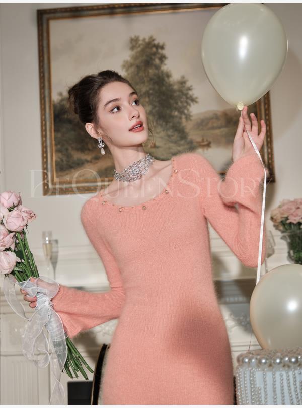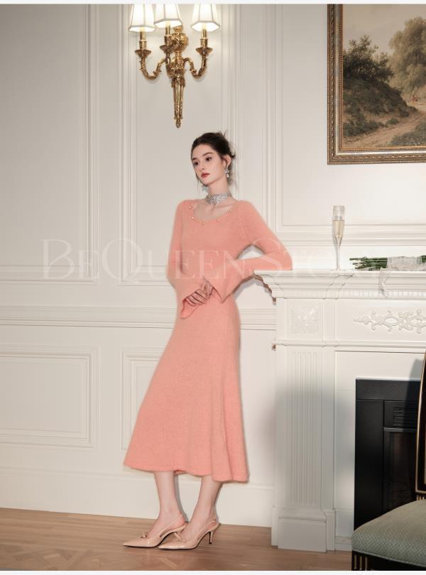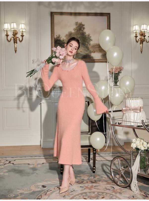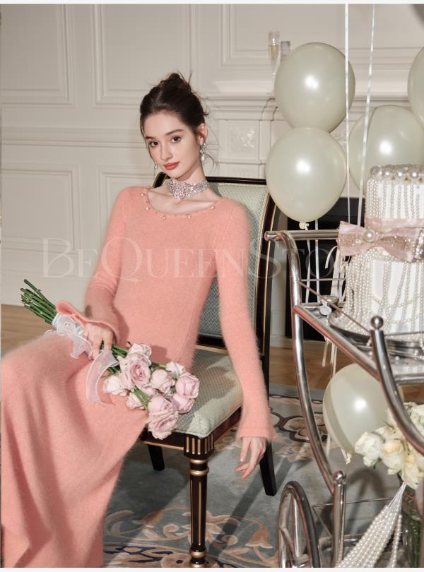 BeQueenStory【柔光曲线】气质柔软安哥拉兔毛显瘦U领鱼尾连衣裙女