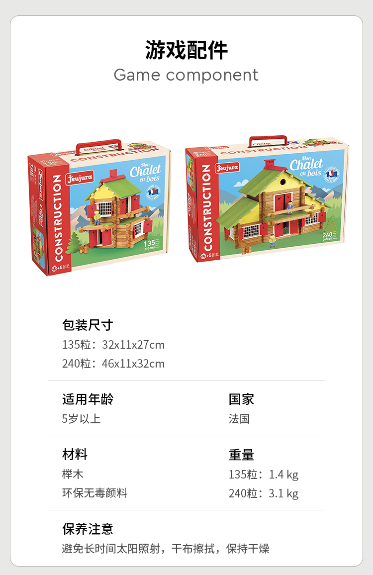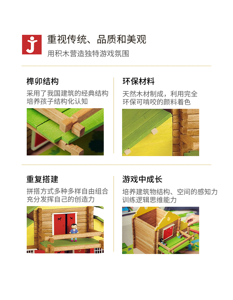 Vilac 经典款建构积木 240粒 积木 适合年龄5岁+ 榫卯结构 法国玩具 VJ8005