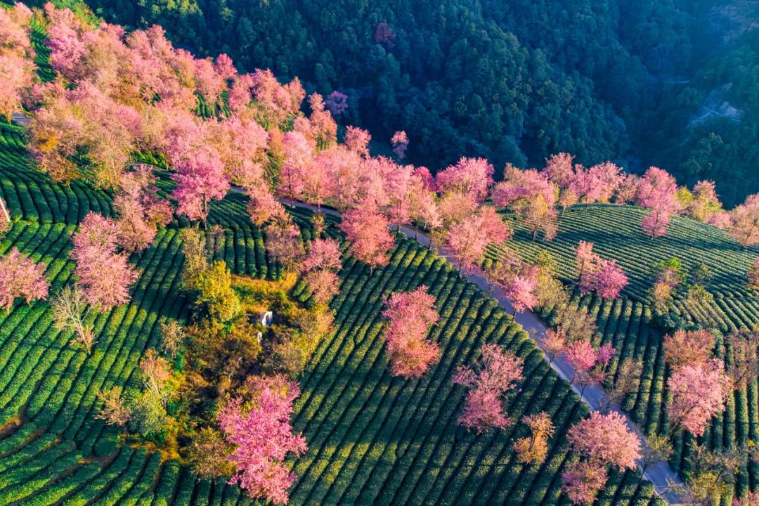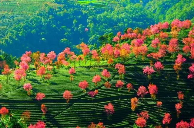 1、无量山万株樱花绽放于翠绿茶园,宛若仙境;2、大理邂逅越冬精灵西伯利亚红嘴鸥;