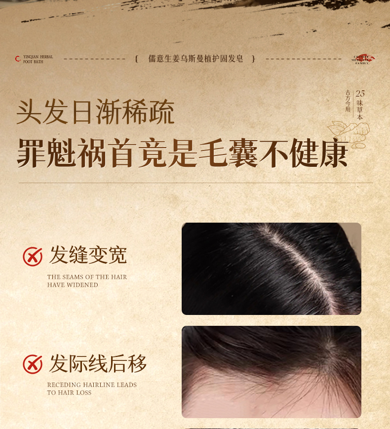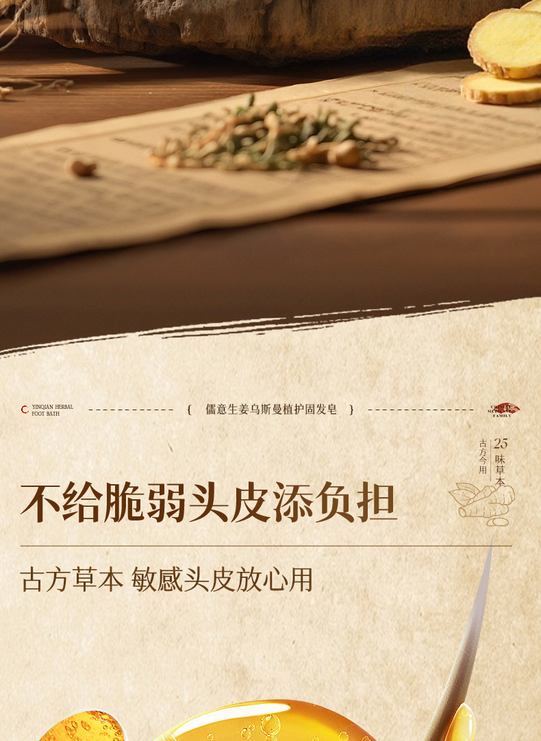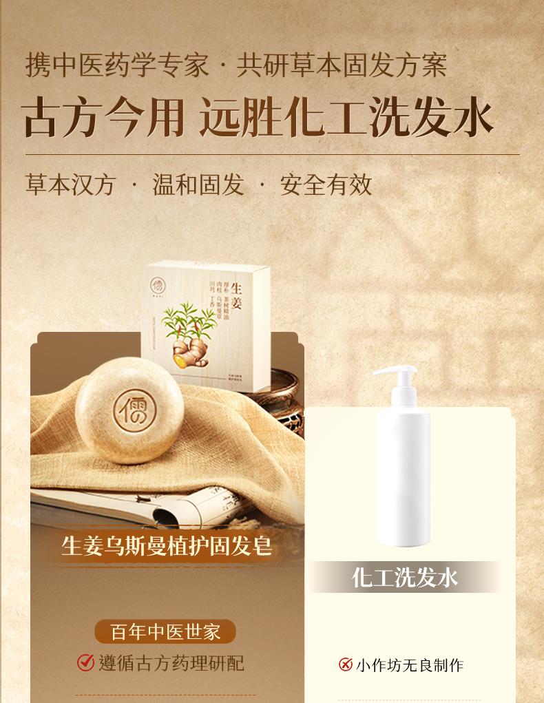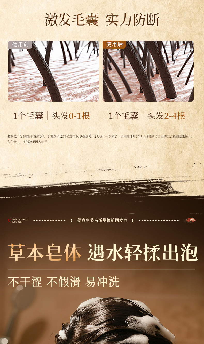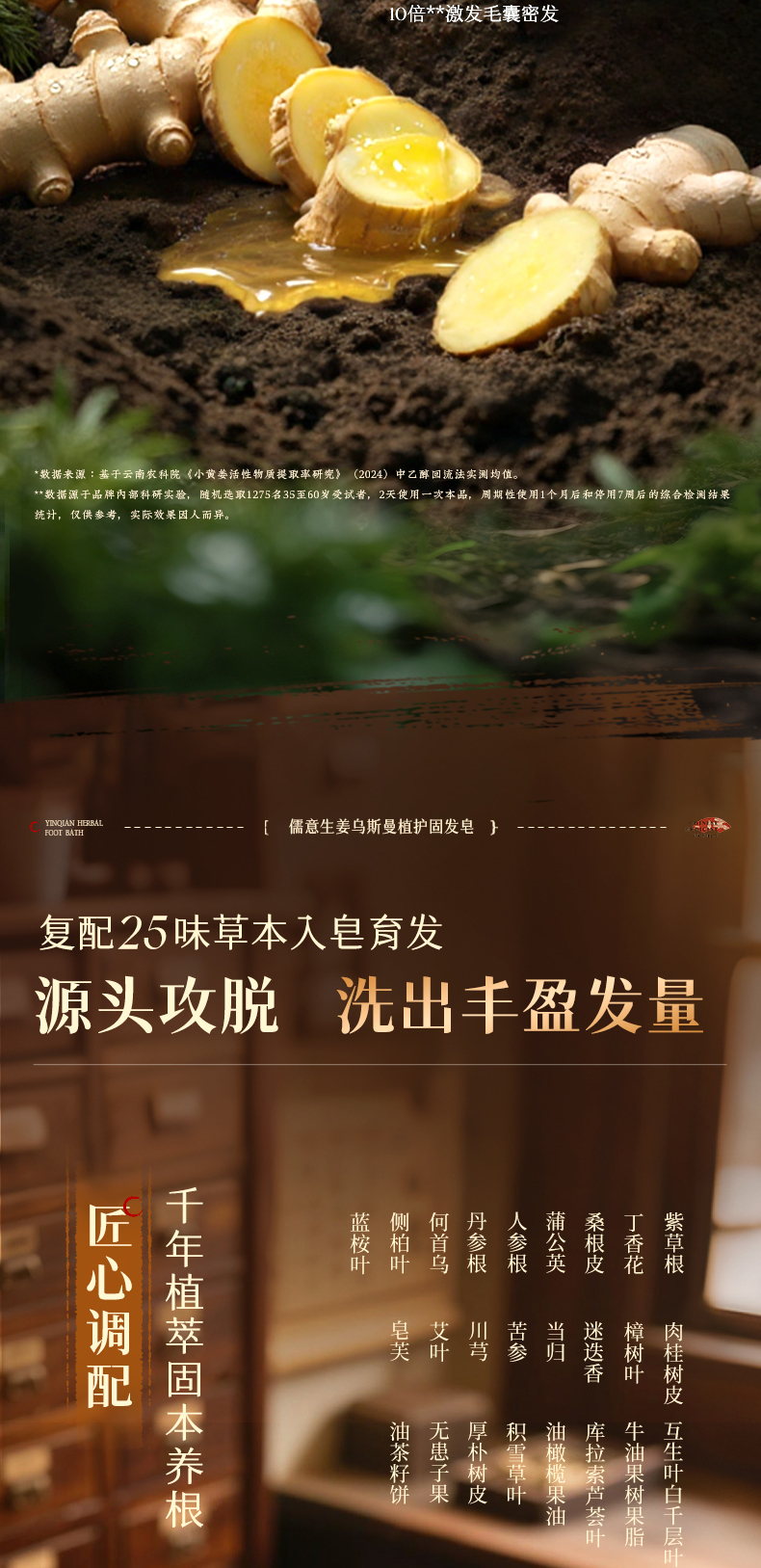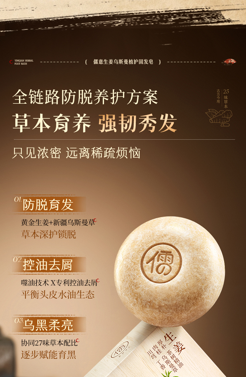 儒意生姜侧柏叶洗发皂 新疆乌斯曼草何首乌中药固发防断发控油120g+送起泡网