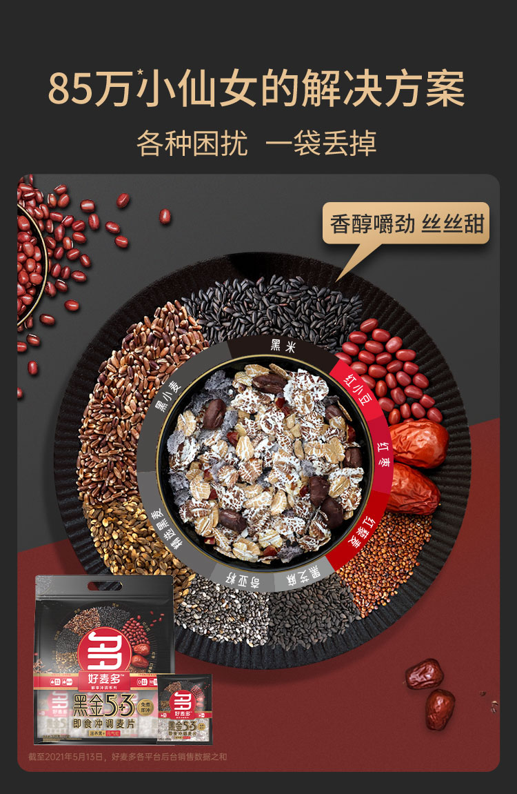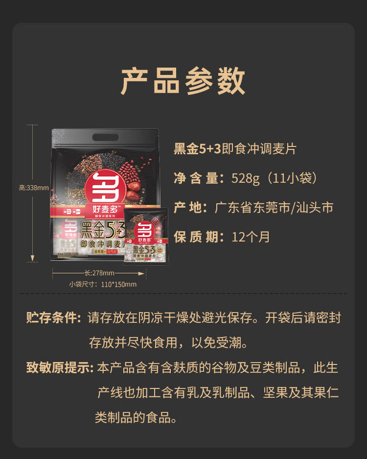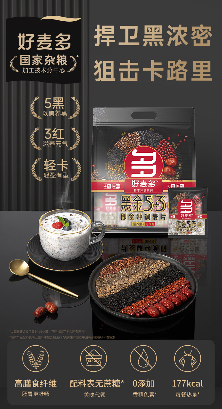好麦多 黑金5+3即食冲调麦片 528g