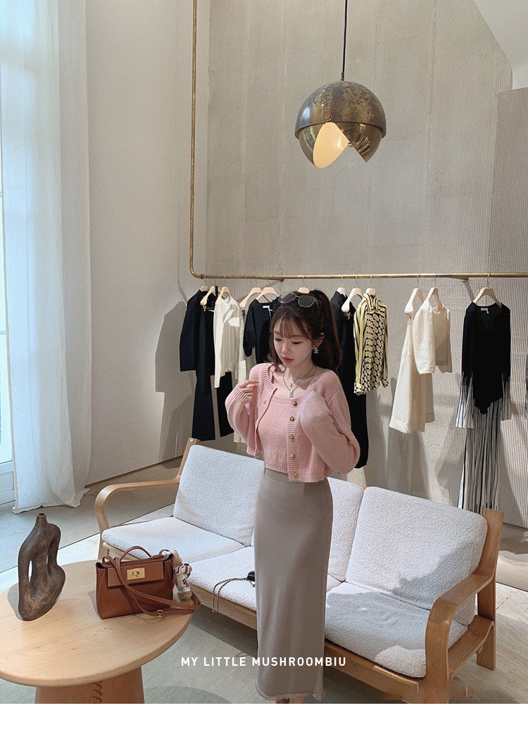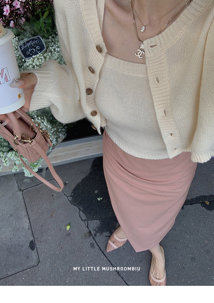 | 开衫+背心10%马海毛12%羊毛26%腈纶52%锦纶极简半裙面料:74%聚酯纤维 17%粘纤 9%氨纶 针织半裙面料:78%粘纤 22%尼龙斜裁半裙面料:95%聚酯纤维5%氨纶 |