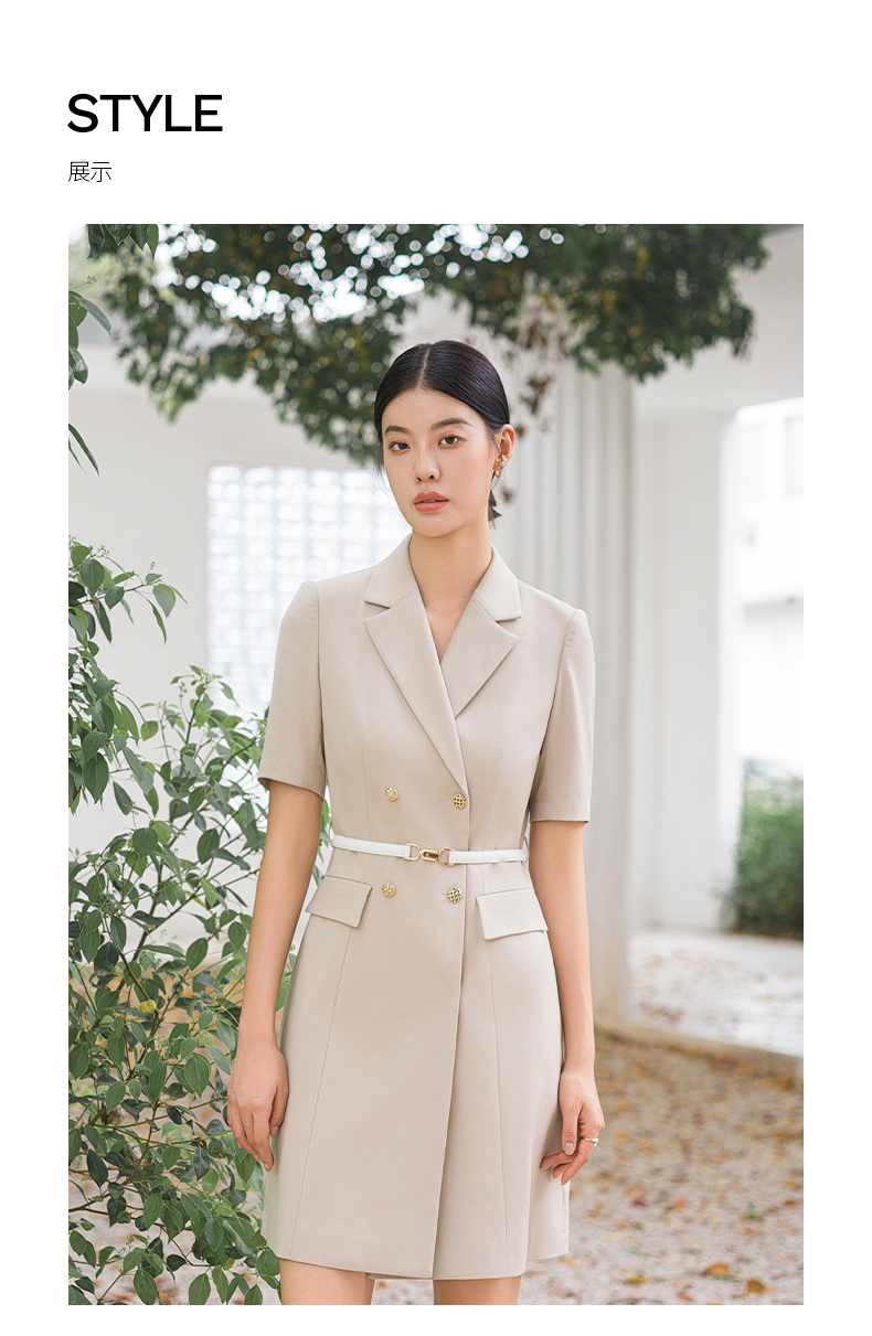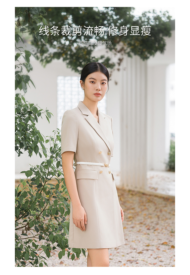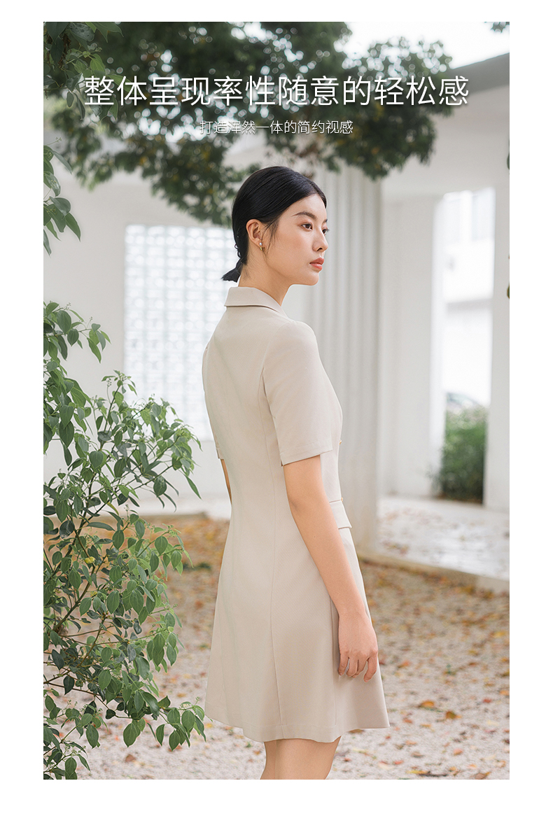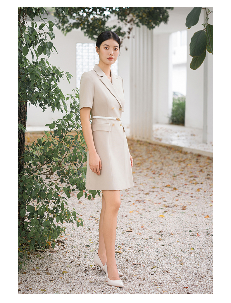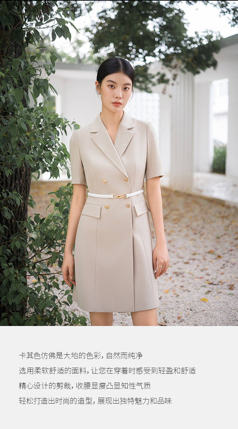 IWY/气质卡其色西装连衣裙短袖夏高级修身显瘦美容院商务约会裙子Q14236