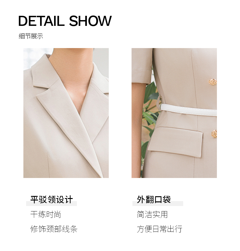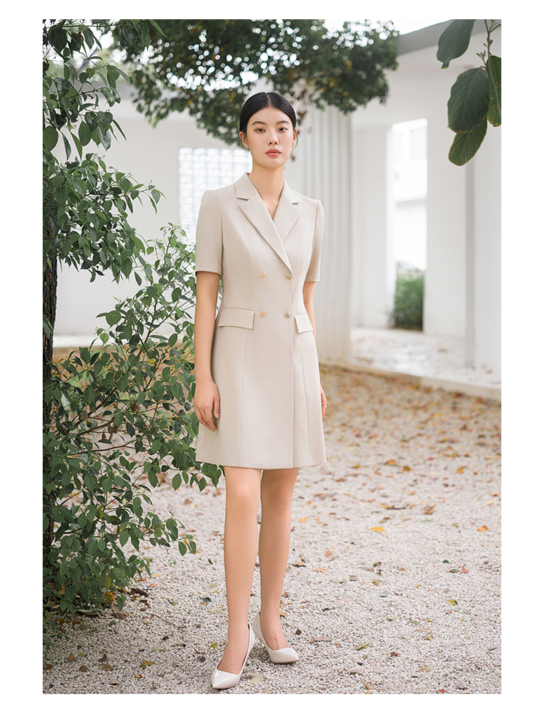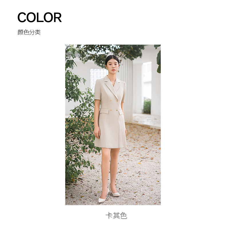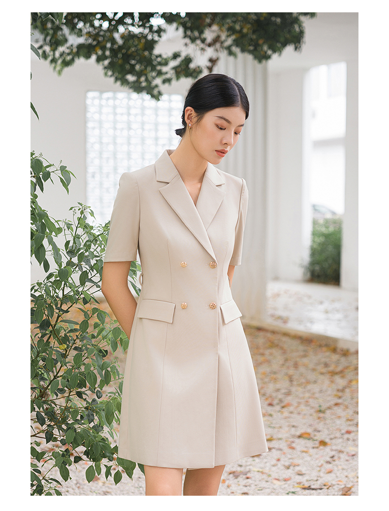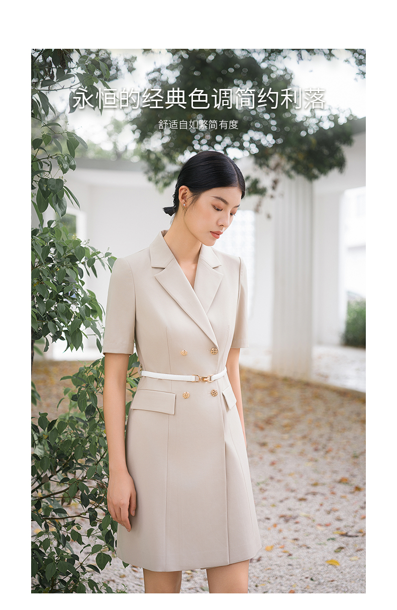 IWY/气质卡其色西装连衣裙短袖夏高级修身显瘦美容院商务约会裙子Q14236