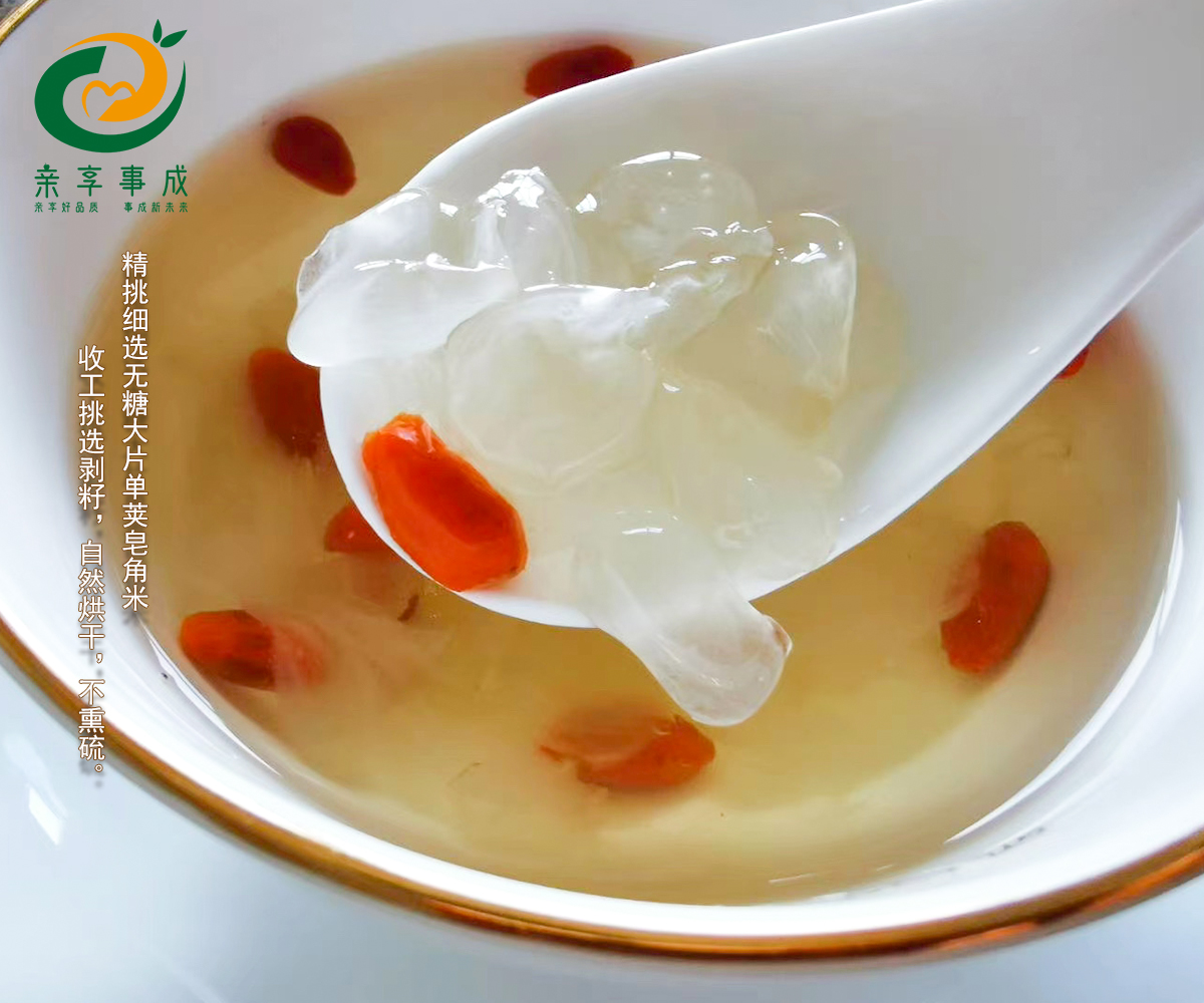 2.皂角米有“植物燕窝”的美称,含有丰富的胶原蛋白,曾经是进贡皇室的美味佳品,如今出口至台湾和韩国,深受女性朋友喜爱,是不可错过的美颜佳品。