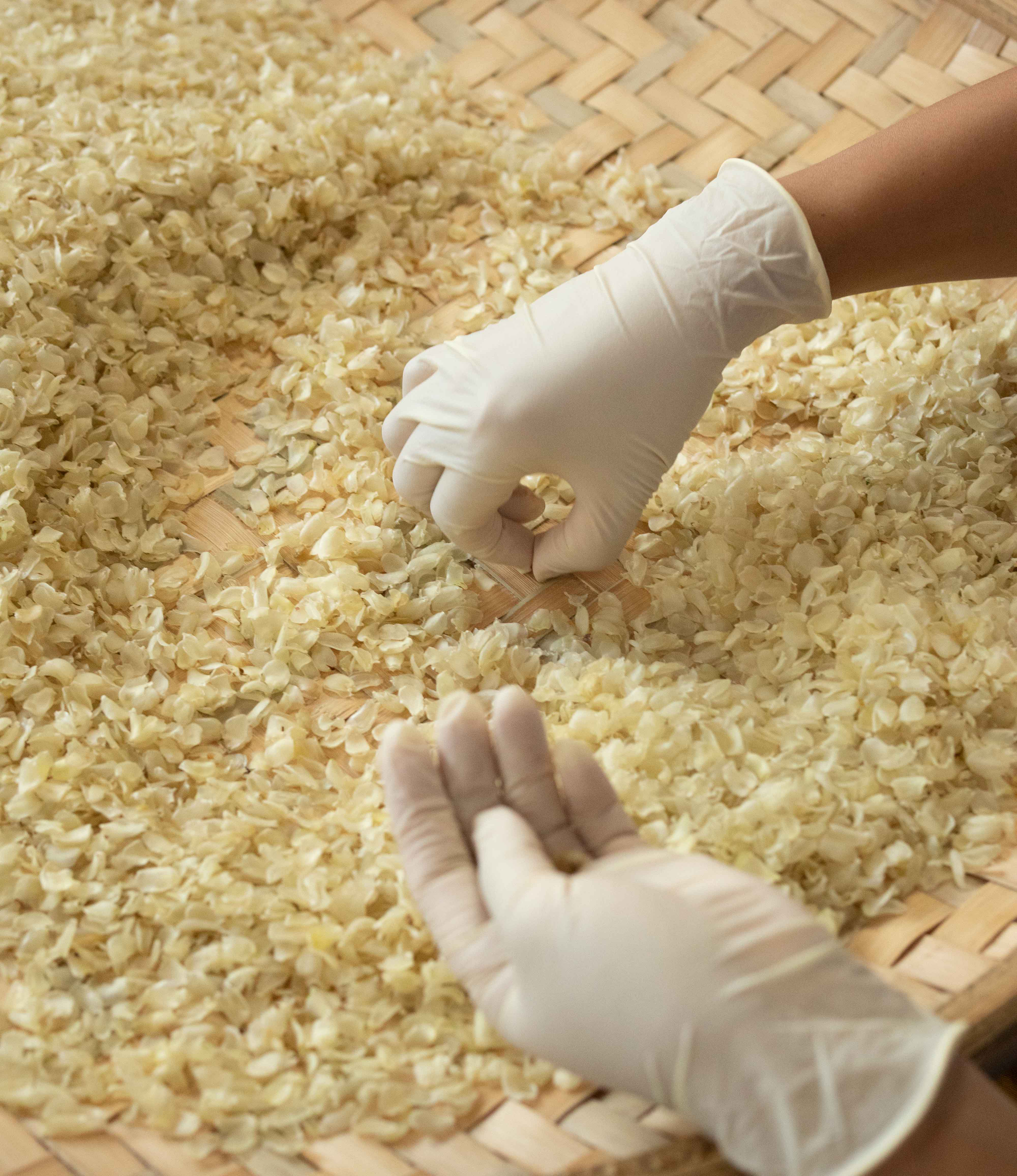 我们的皂角米产自云南梁河县纯净的山区,不经过药物的增大和漂白,无添加绿色美食,真正的野生梁河皂角米。粒薄如指甲,颗粒饱满,色泽晶莹,发泡率高,滑嫩爽口,入口甘甜,香糯润口。