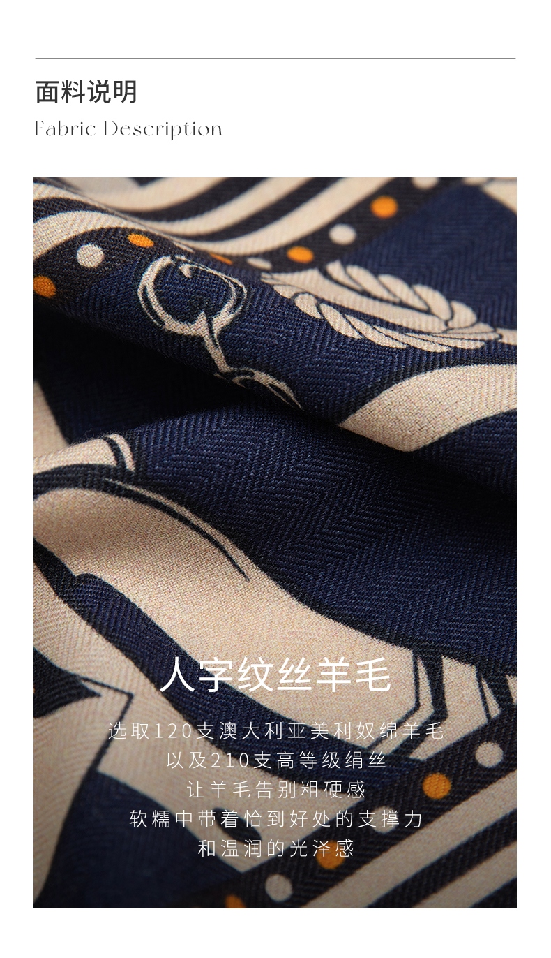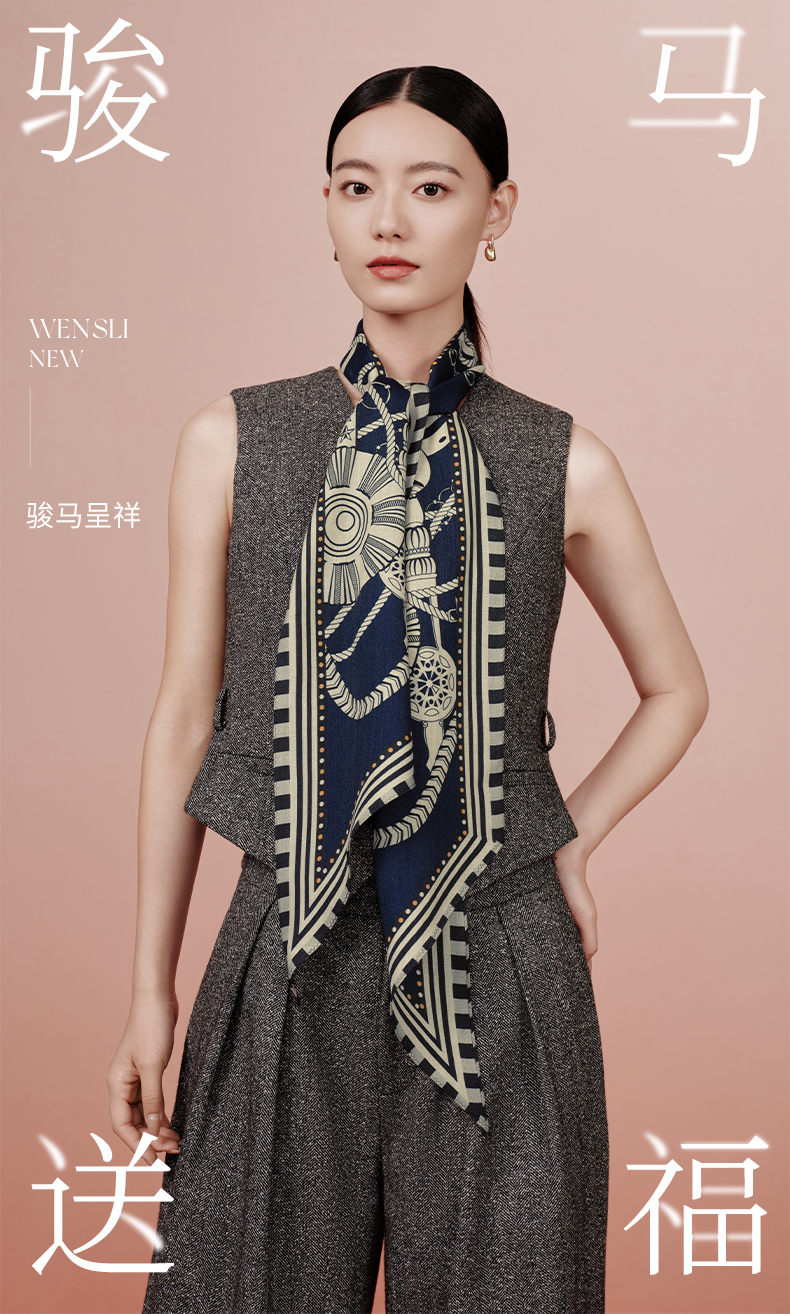 万事利“骏马呈祥”双面印花丝羊毛小长巾