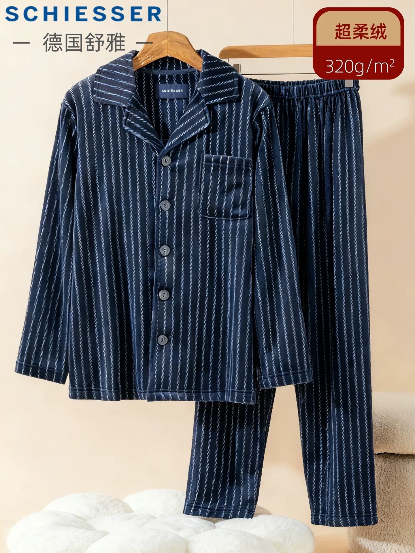 【超柔绒】SCHIESSER德国舒雅男士超柔绒 家居睡衣套装320克39/25497H