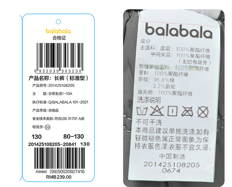 【商场同款】巴拉巴拉宝宝长裤男女童冬装2025新款保暖束脚裤子