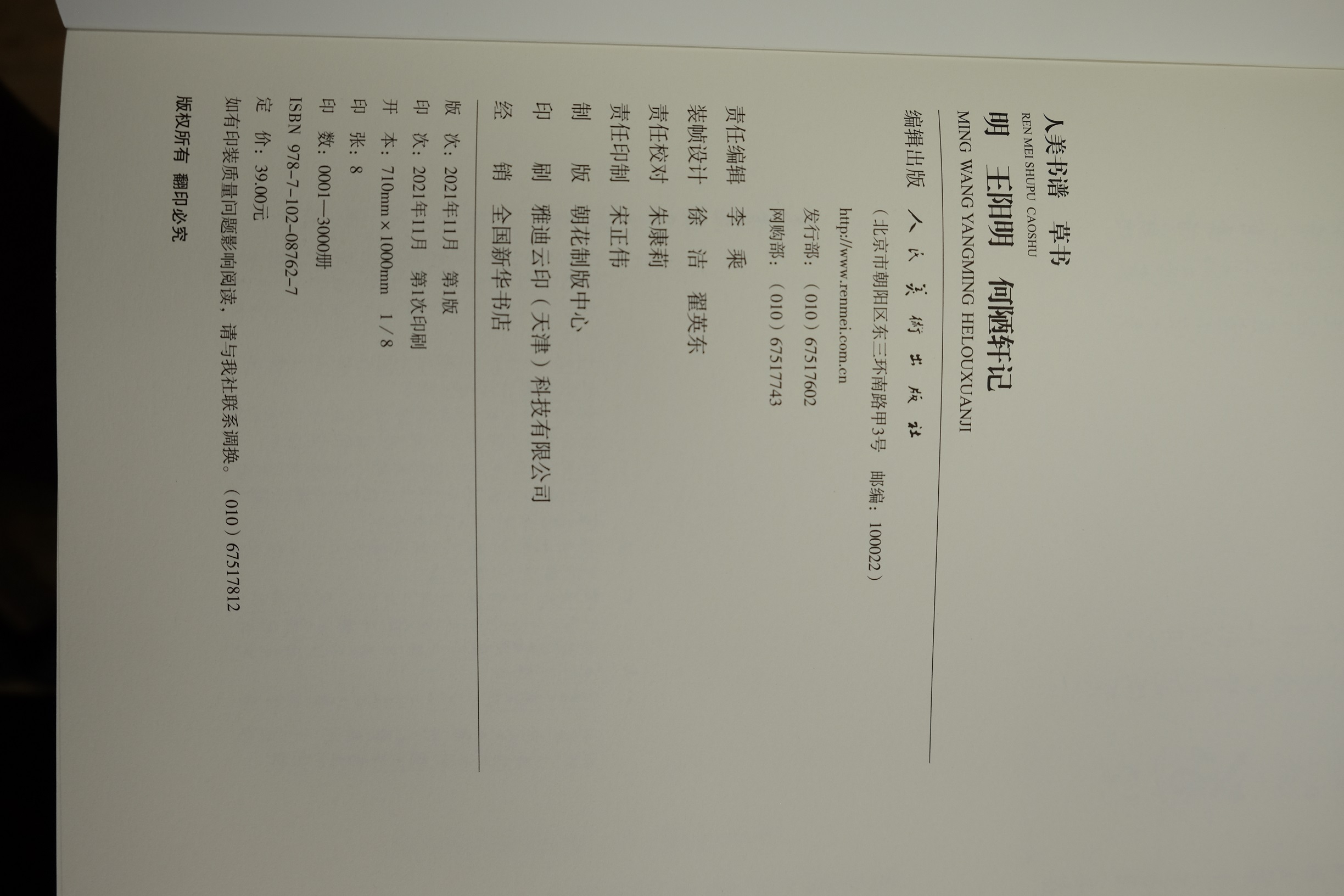 人美书谱 草书 明 王阳明 何陋轩记【现货包邮】RM0054