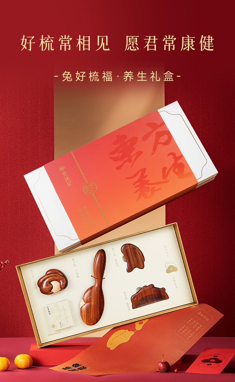 梵沐记玉兔拢月中秋月饼按摩梳礼盒