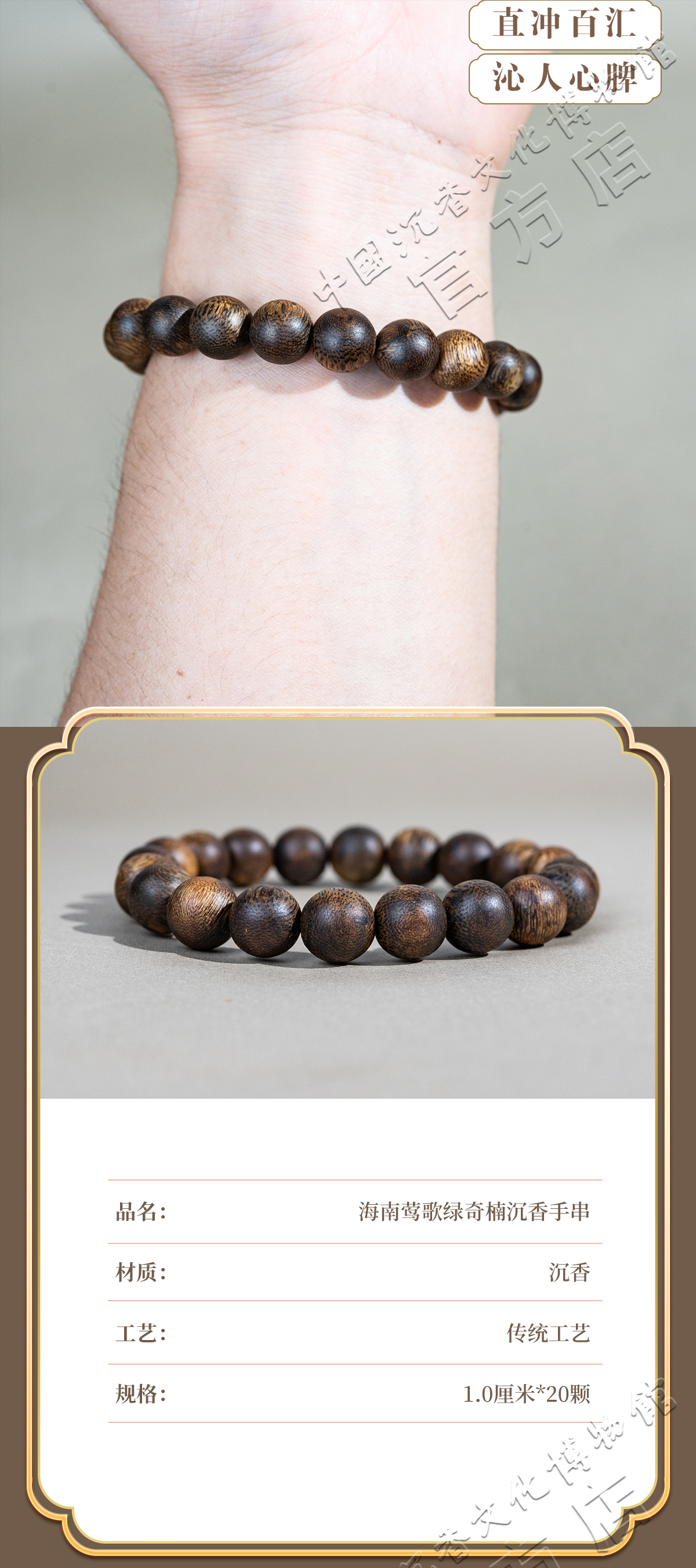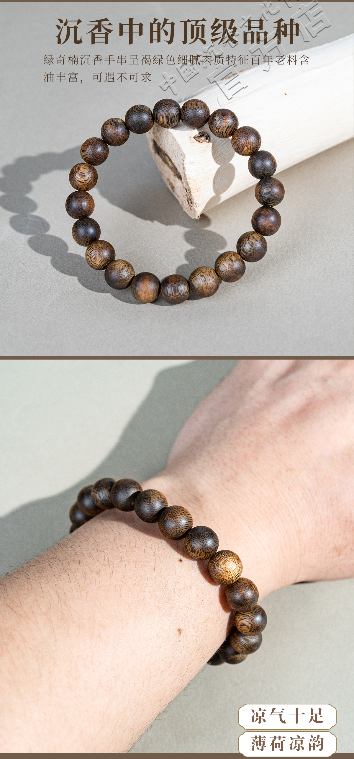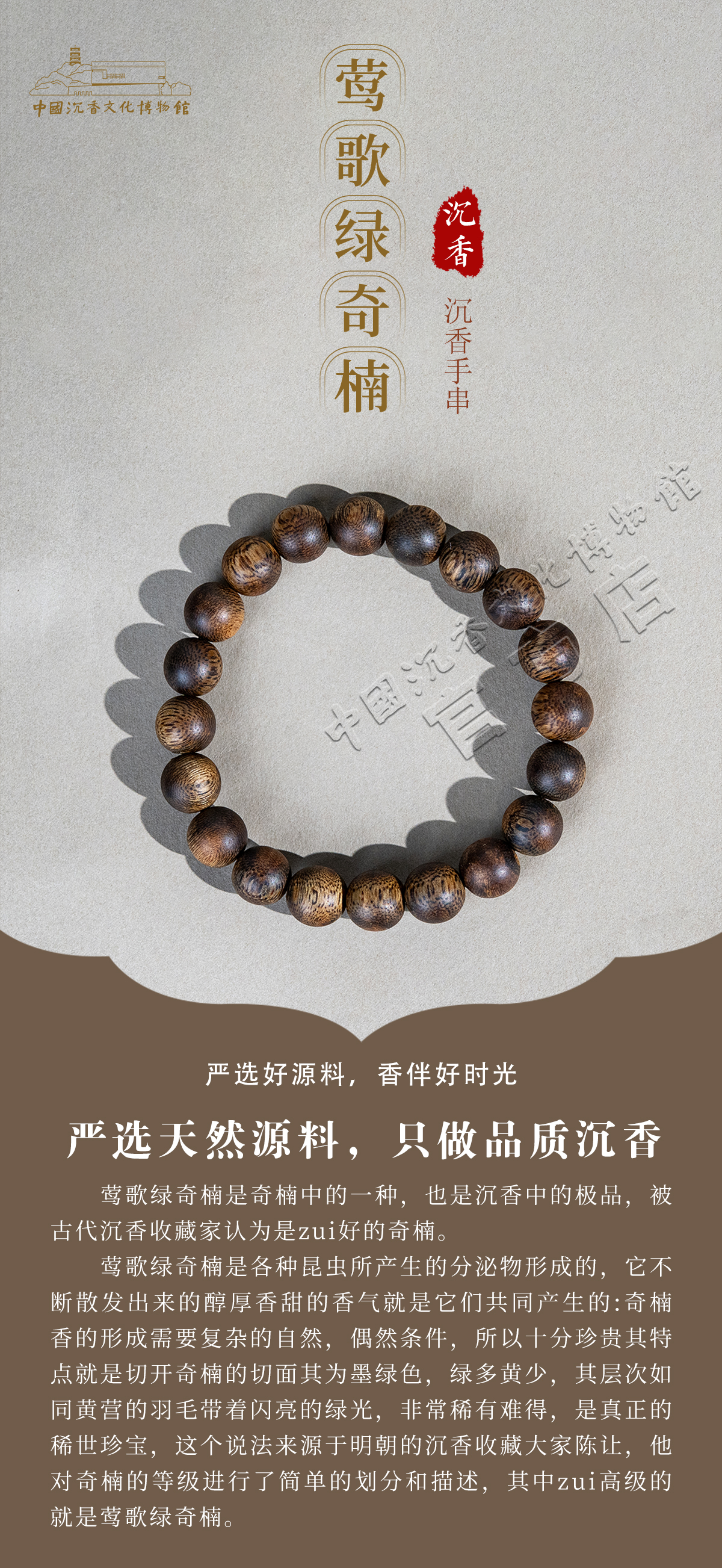 中国沉香文化博物馆 绿奇楠鼓珠沉香手串1.0*20*9g+(九分沉)