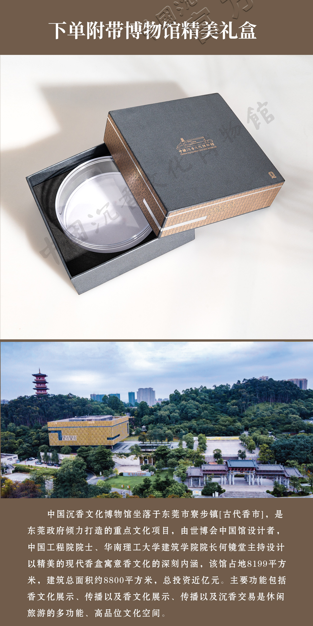 中国沉香文化博物馆坐落于古代[香市]东莞市寮步镇,是东莞政府倾力打造的重点文化项目,由世博会中国馆设计者,中国工程院院士、华南理工大学建筑学院院长何镜堂主持设计,以精美的现代[香盒]寓意香文化的深刻内