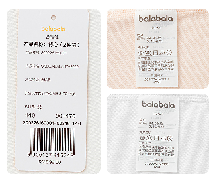 巴拉巴拉儿童背心夏季新款宝宝吊带女童打底衫a类无袖舒适两件装