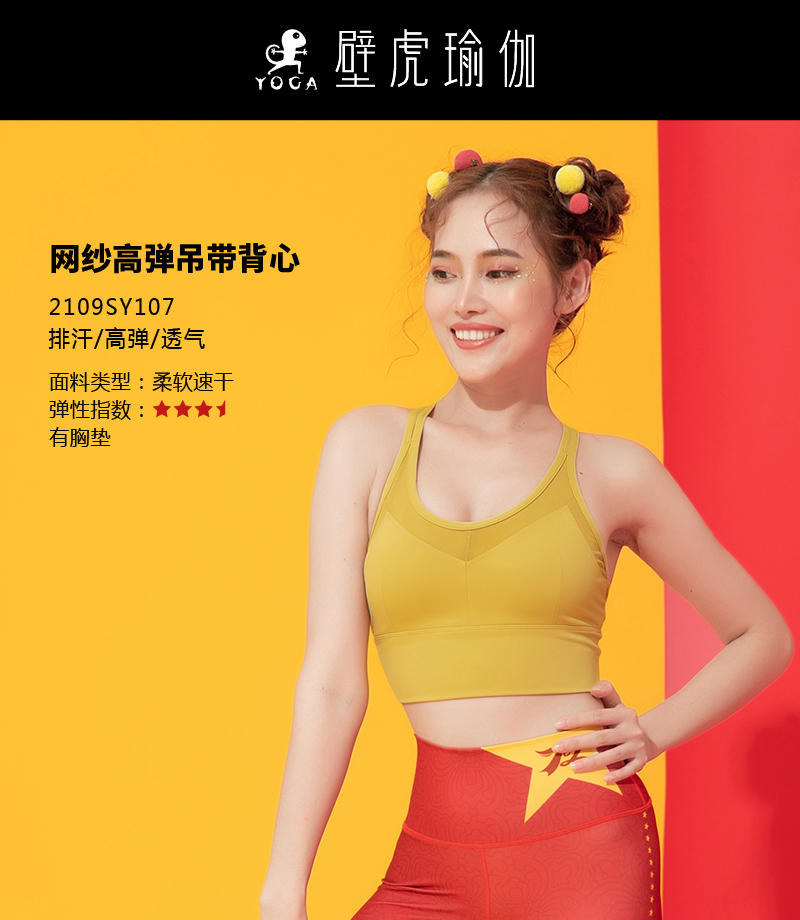 【七十二小时发货】壁虎瑜伽【2109SY107】网纱吊带高弹背心(有胸垫)
