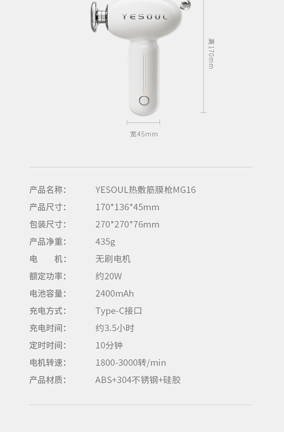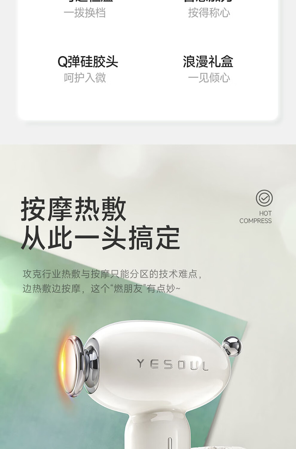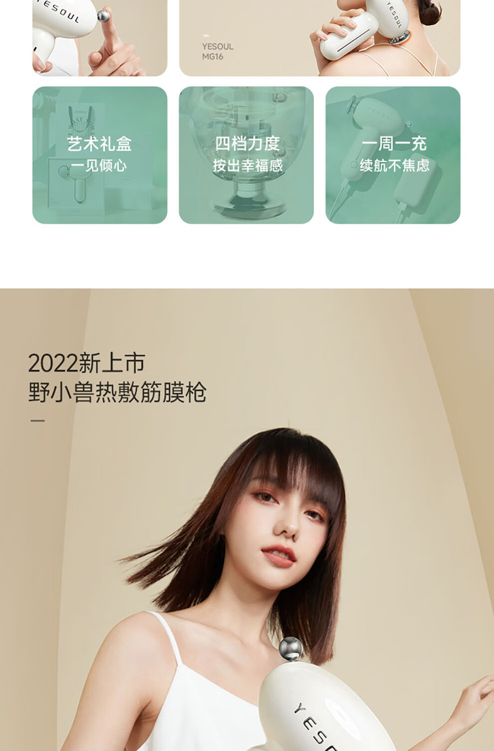 野小兽(YESOUL)送对象礼物热敷筋膜枪肌肉按摩器女生放松按摩仪专业健身颈膜枪 MG16-玉瓷白精美礼盒袋