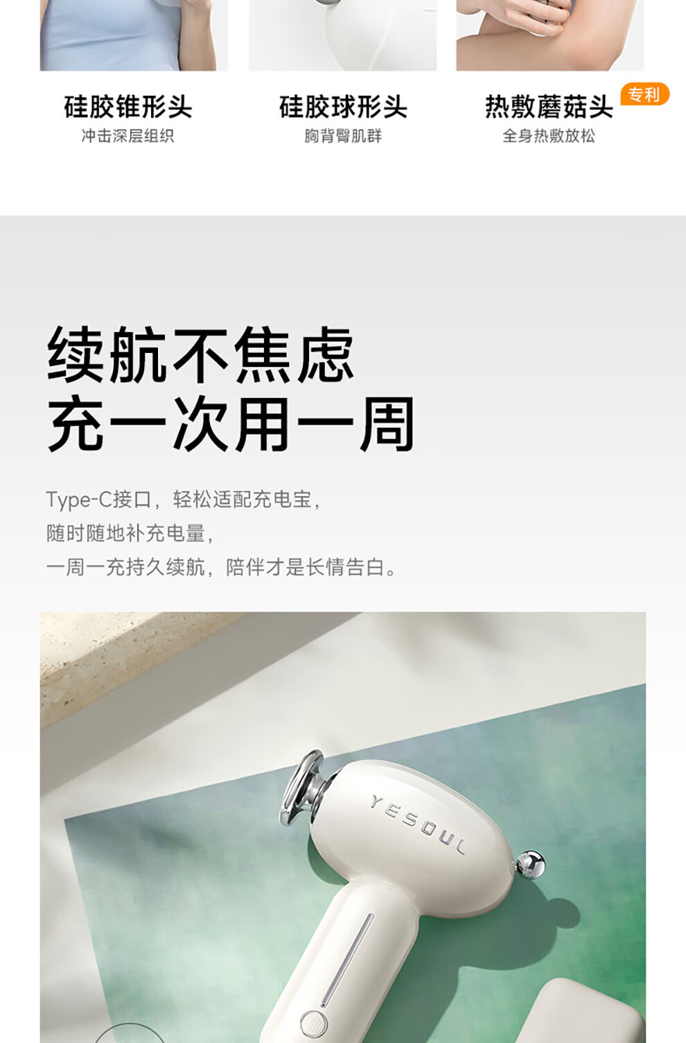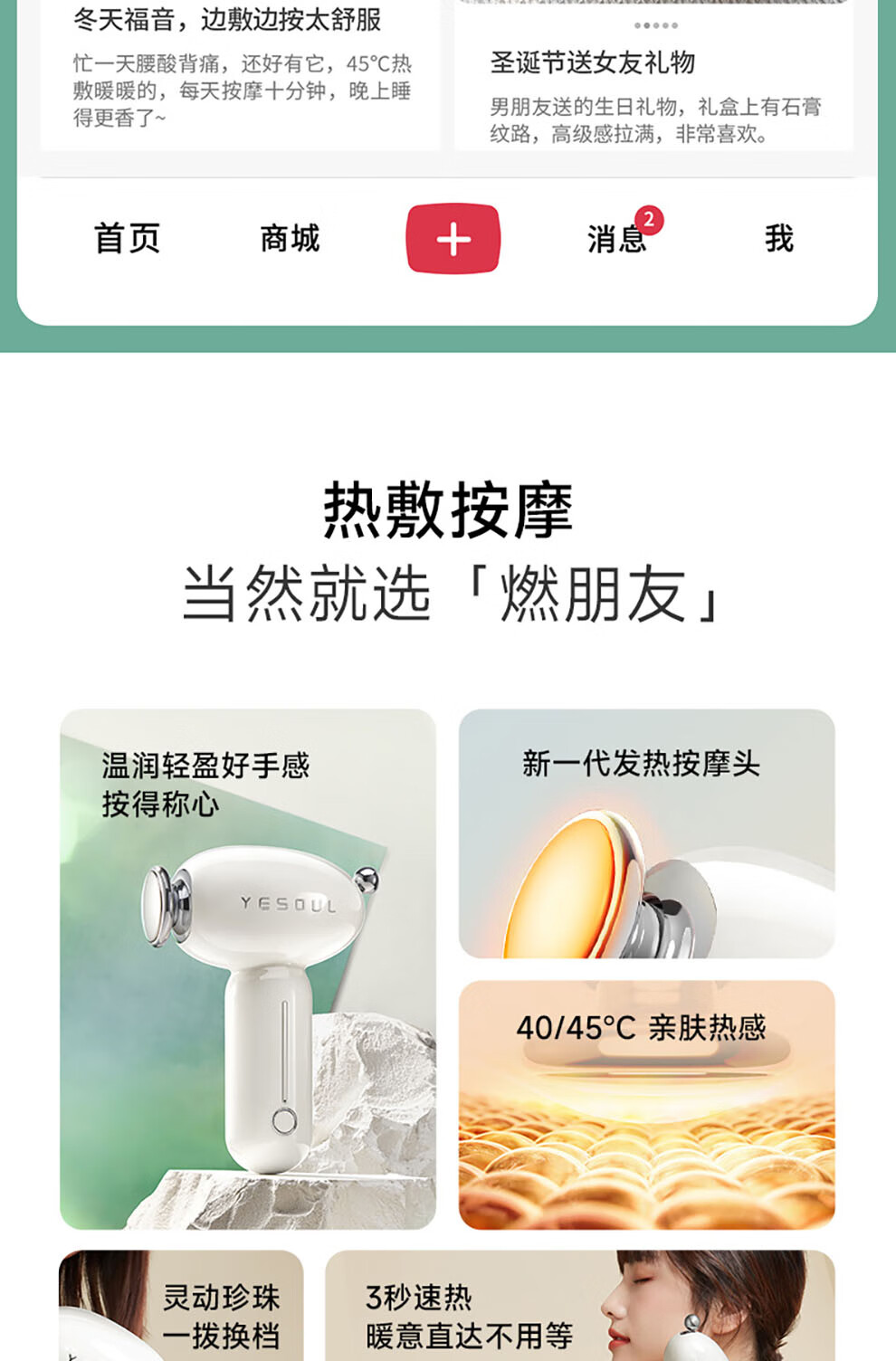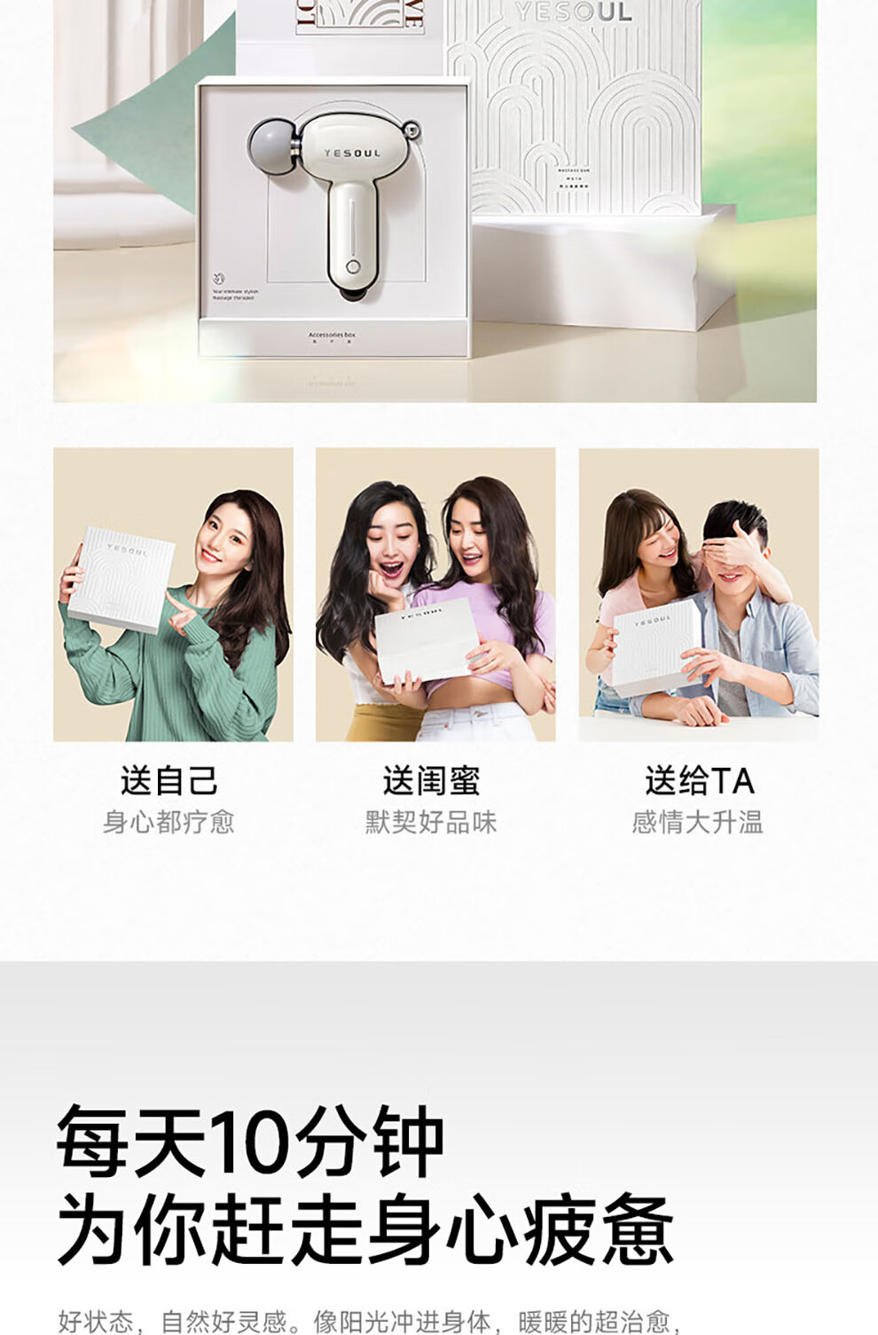 野小兽(YESOUL)送对象礼物热敷筋膜枪肌肉按摩器女生放松按摩仪专业健身颈膜枪 MG16-玉瓷白精美礼盒袋