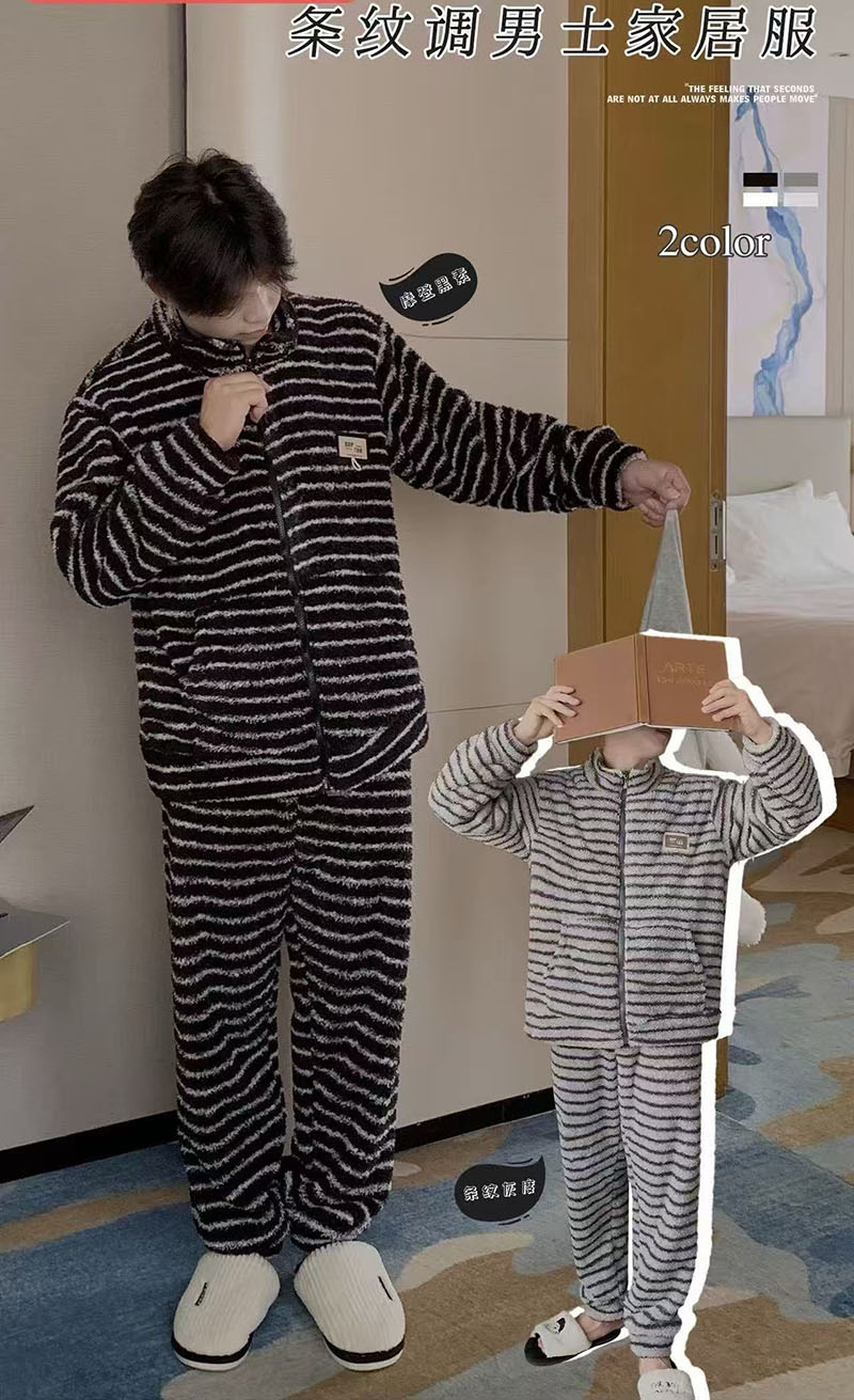 YW珊瑚绒男士简约黑白条加绒加厚居家套装(LH)(LD)-纪念日百货167899038