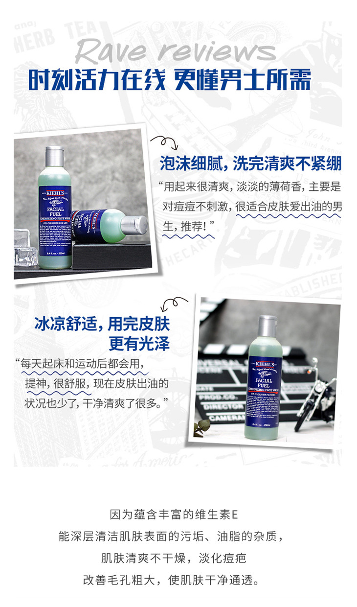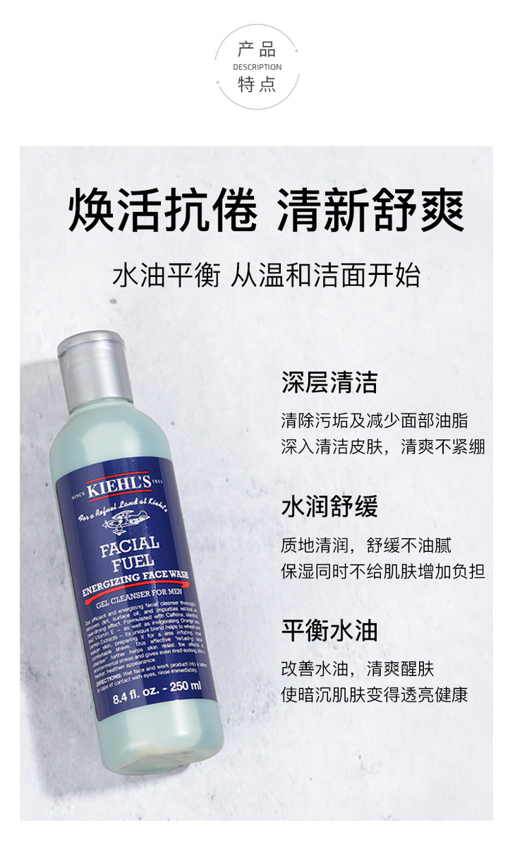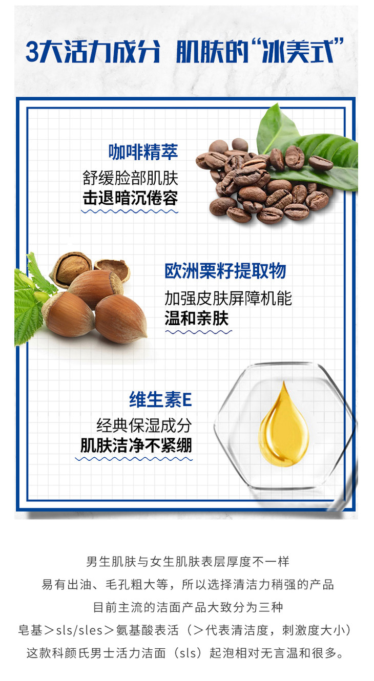 科颜氏男士活力洁面啫喱洗面奶250ml补水滋润深层保湿清爽控油【CDF】