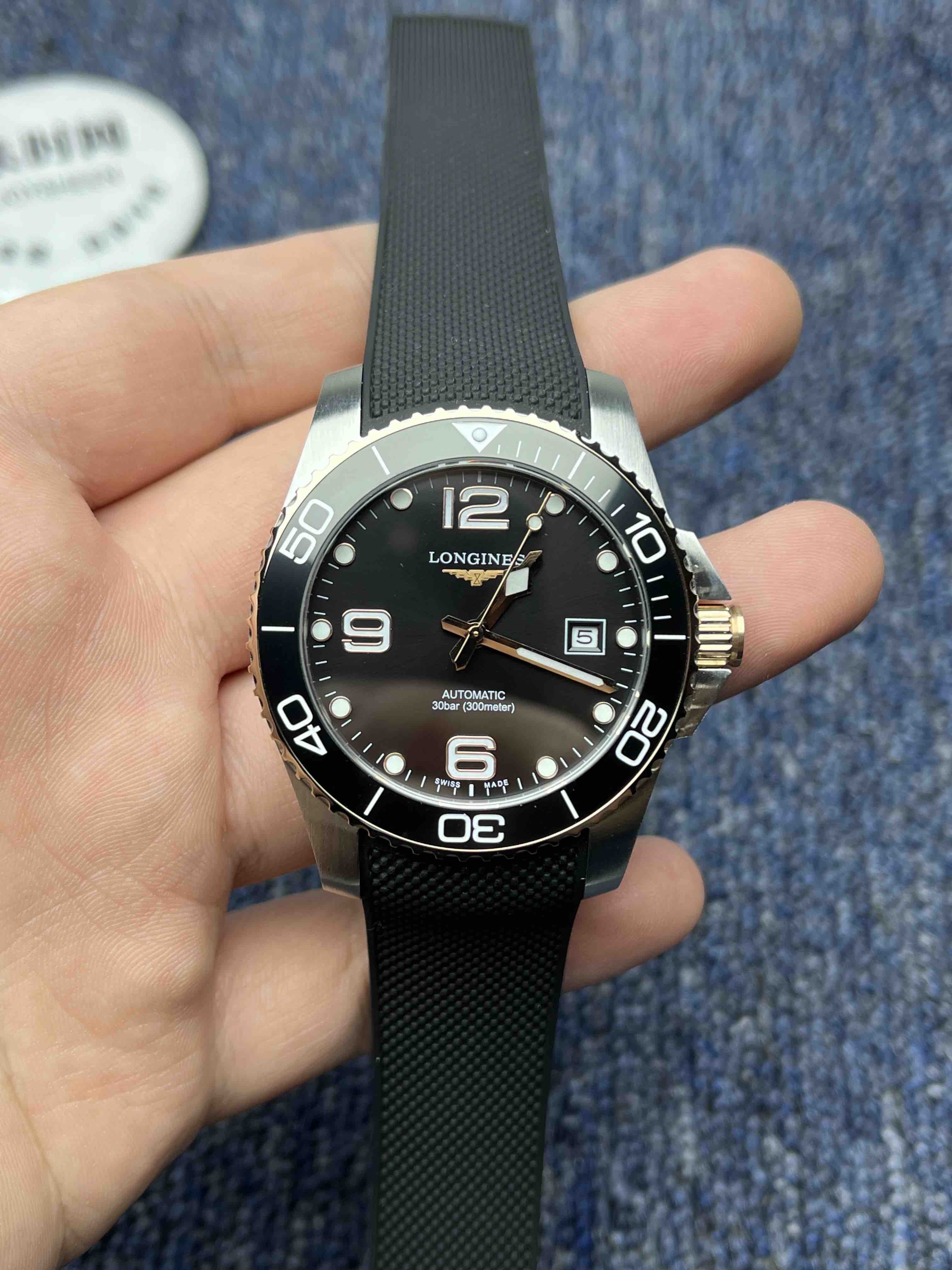 浪琴新款康卡斯系列 黑色盘 间玫金款 男士腕表 增强夜光持久效果!