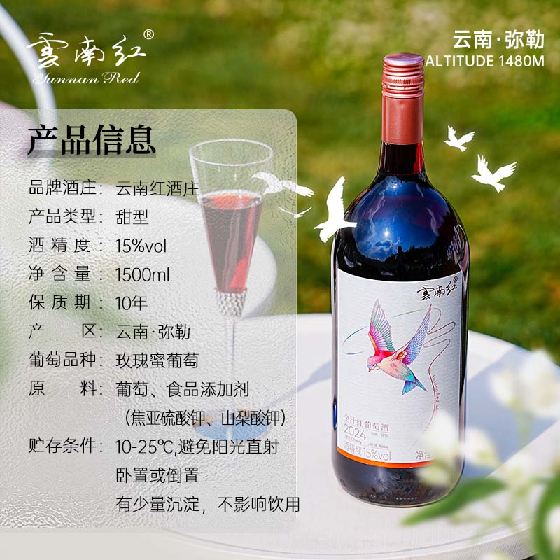云南红1.5L飞鸟甜红葡萄酒15度弥勒酒庄