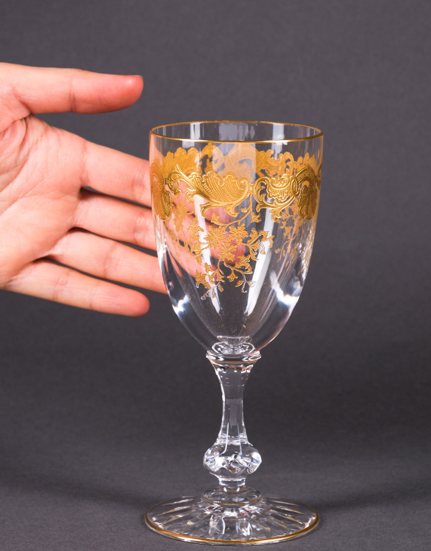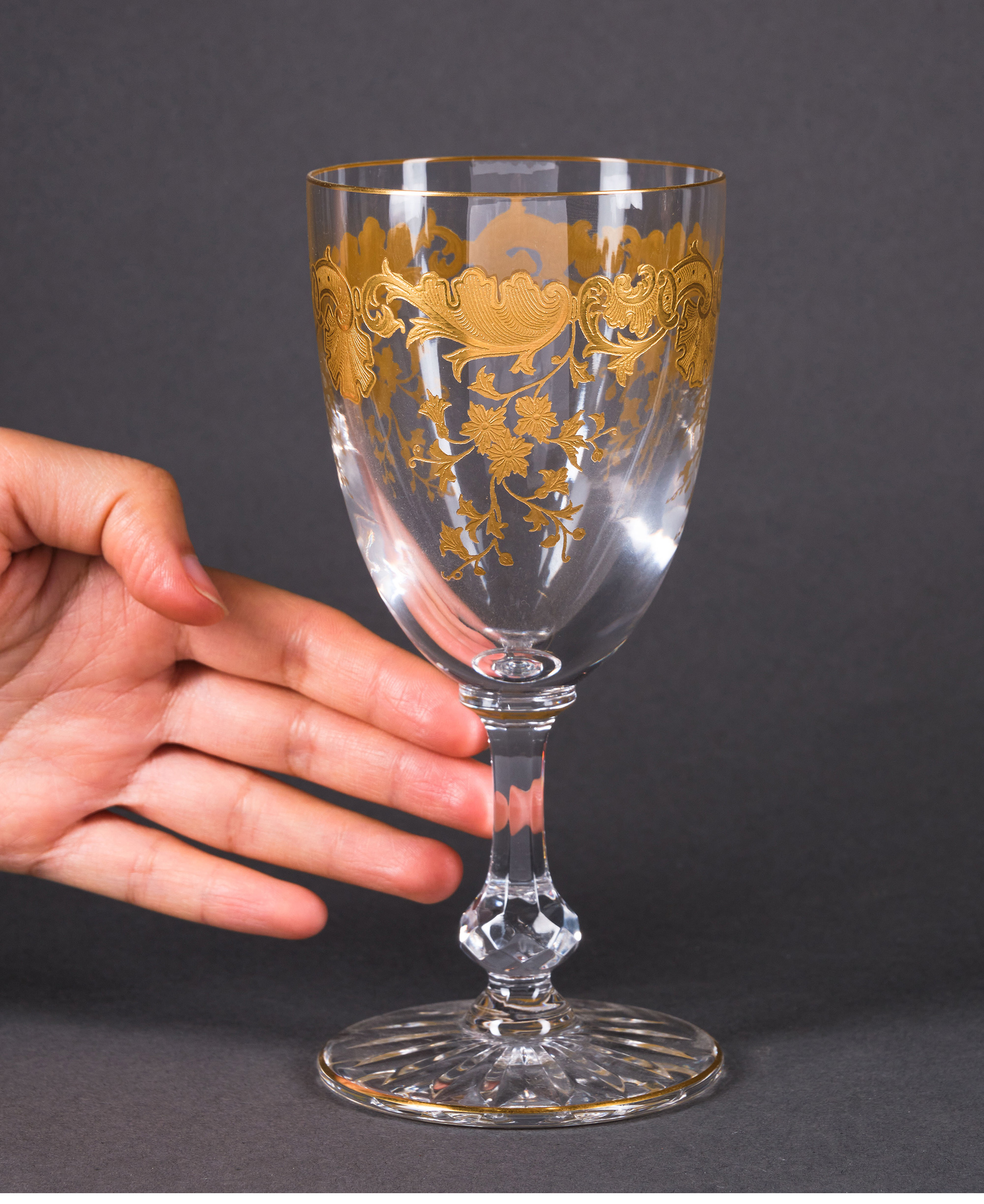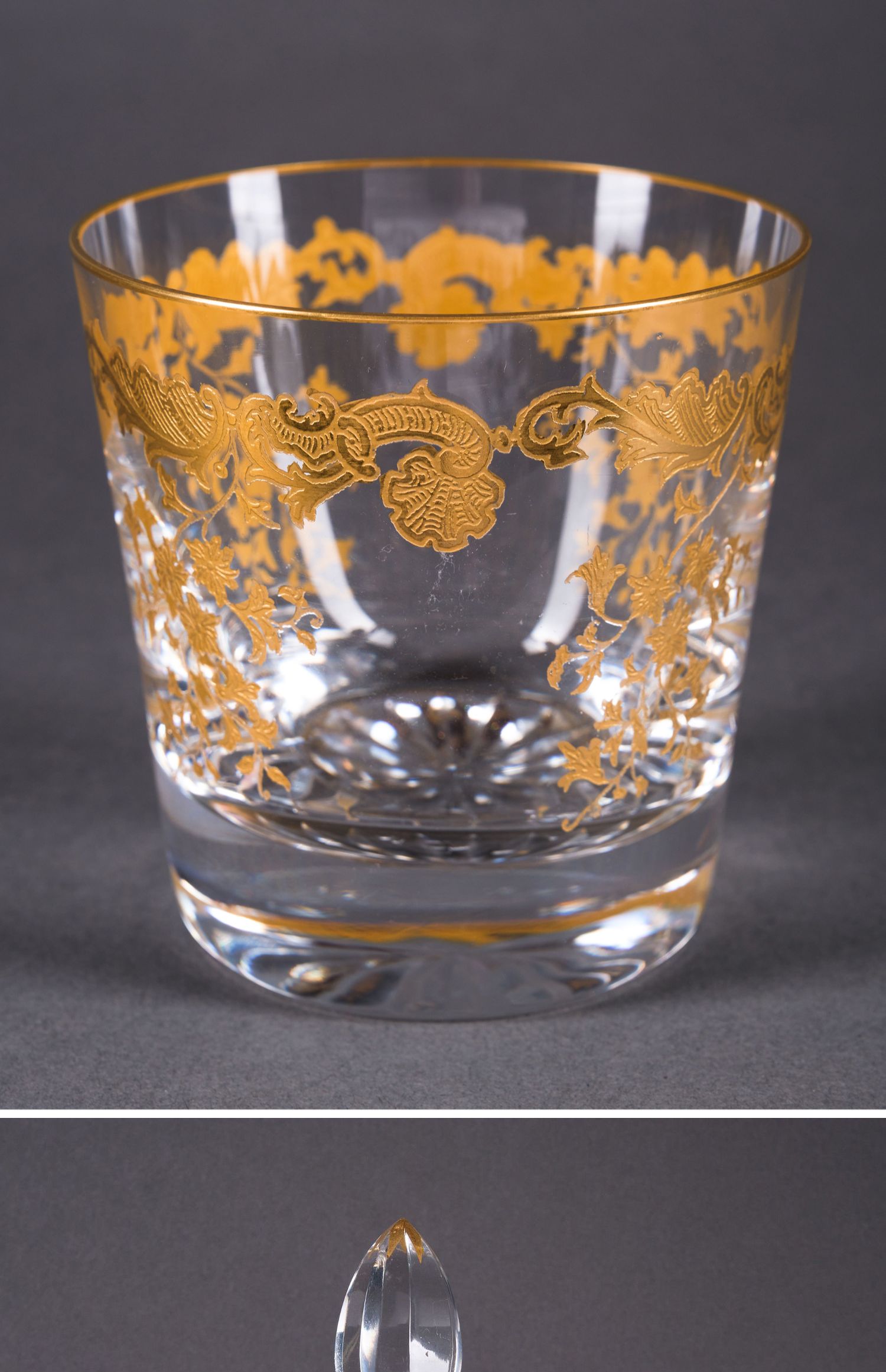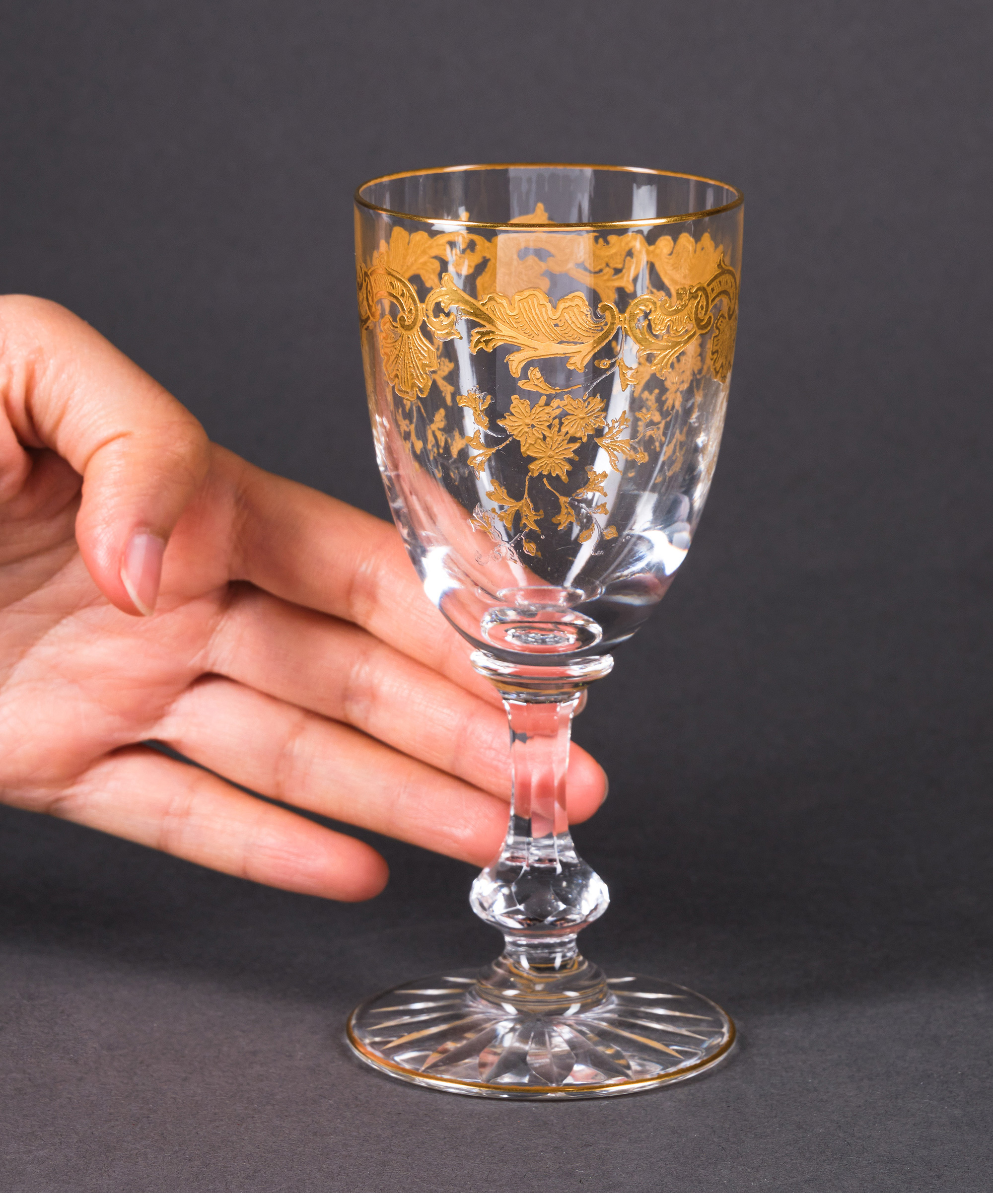 独角鹿西洋古董法国圣路易签名MASSENET系列24K描金水晶酒具套件