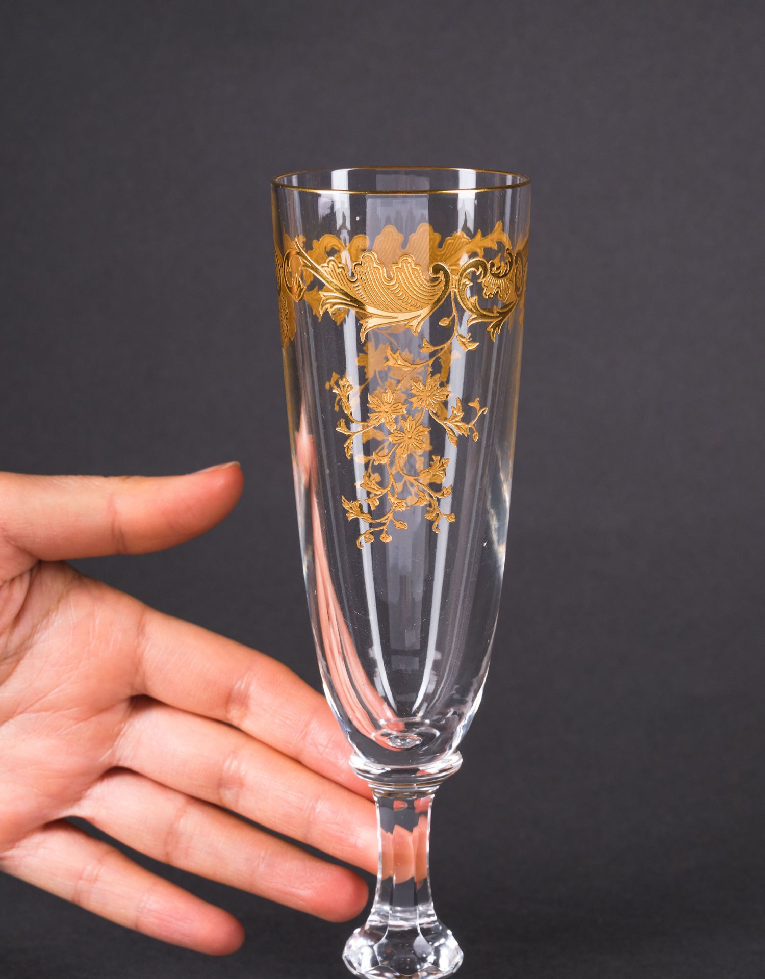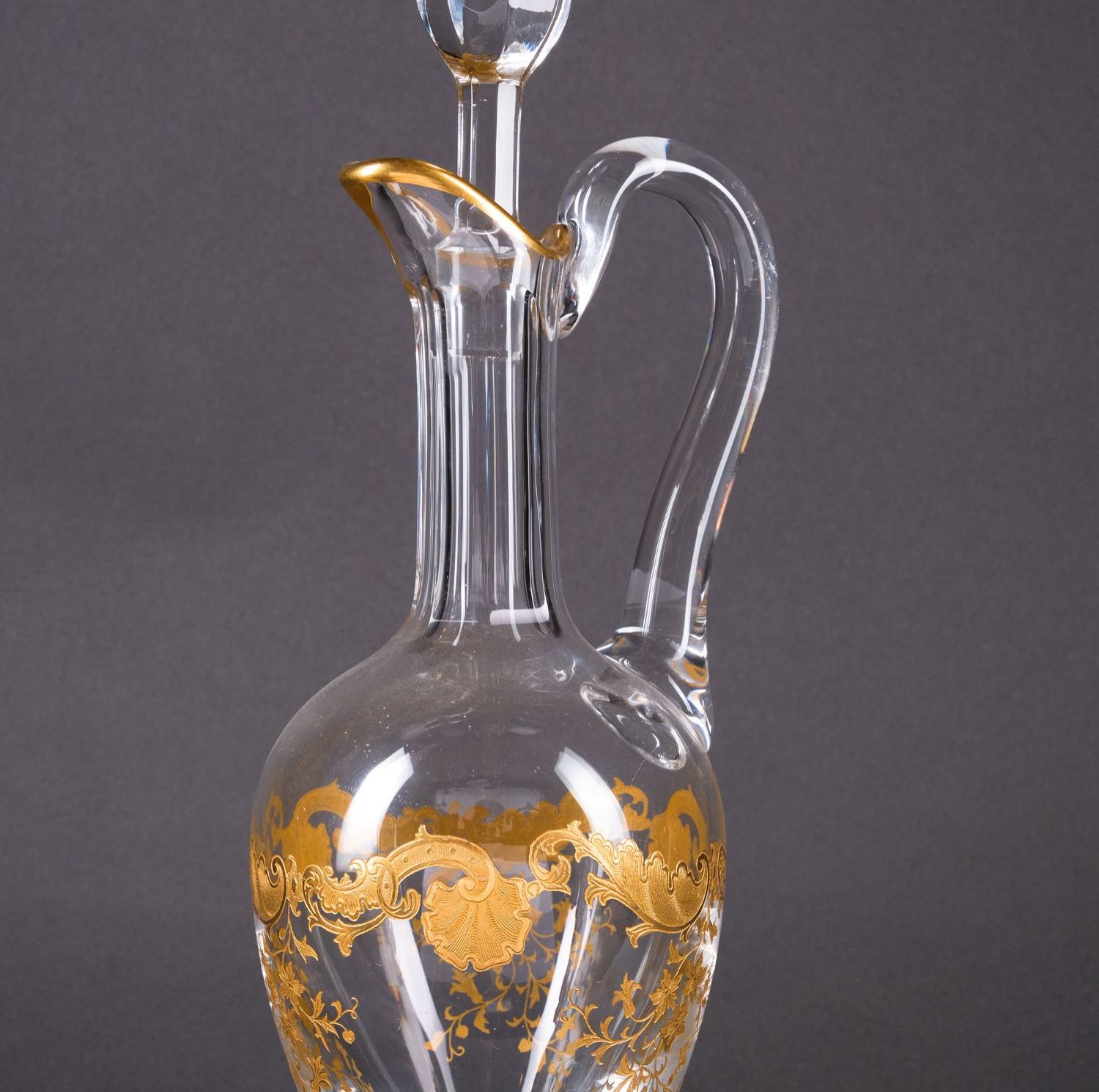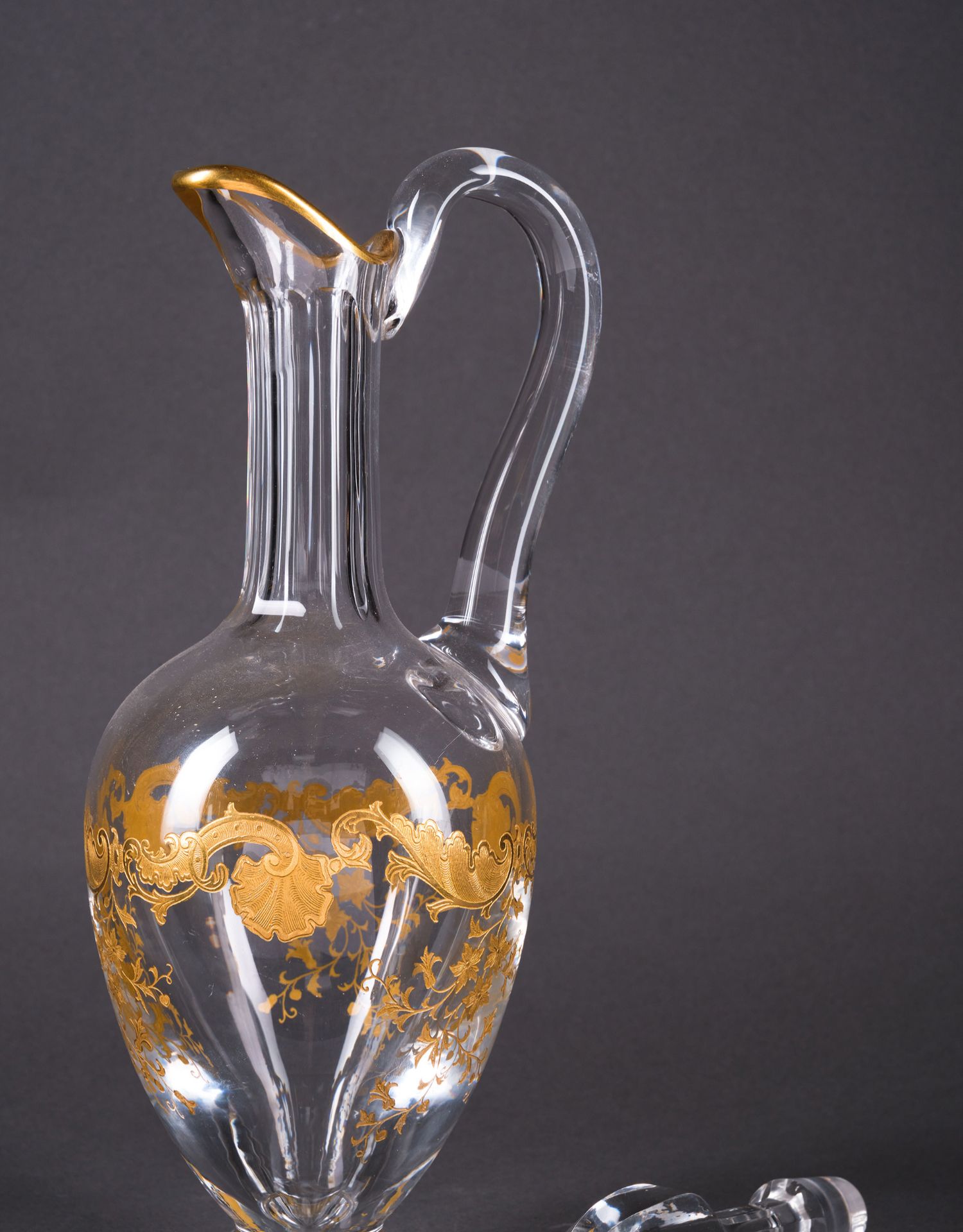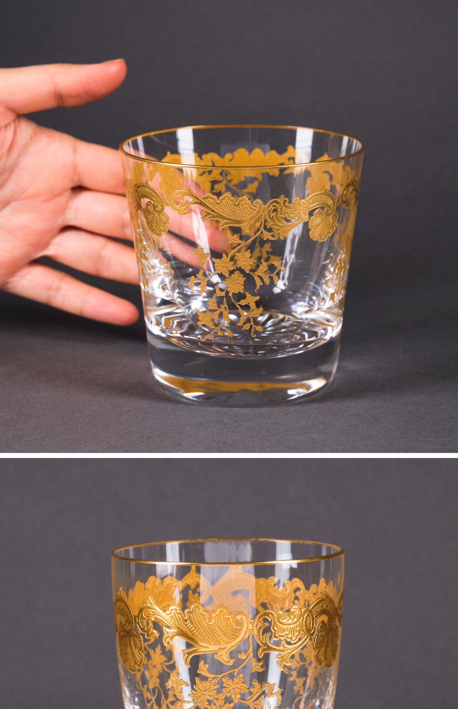 独角鹿西洋古董法国圣路易签名MASSENET系列24K描金水晶酒具套件