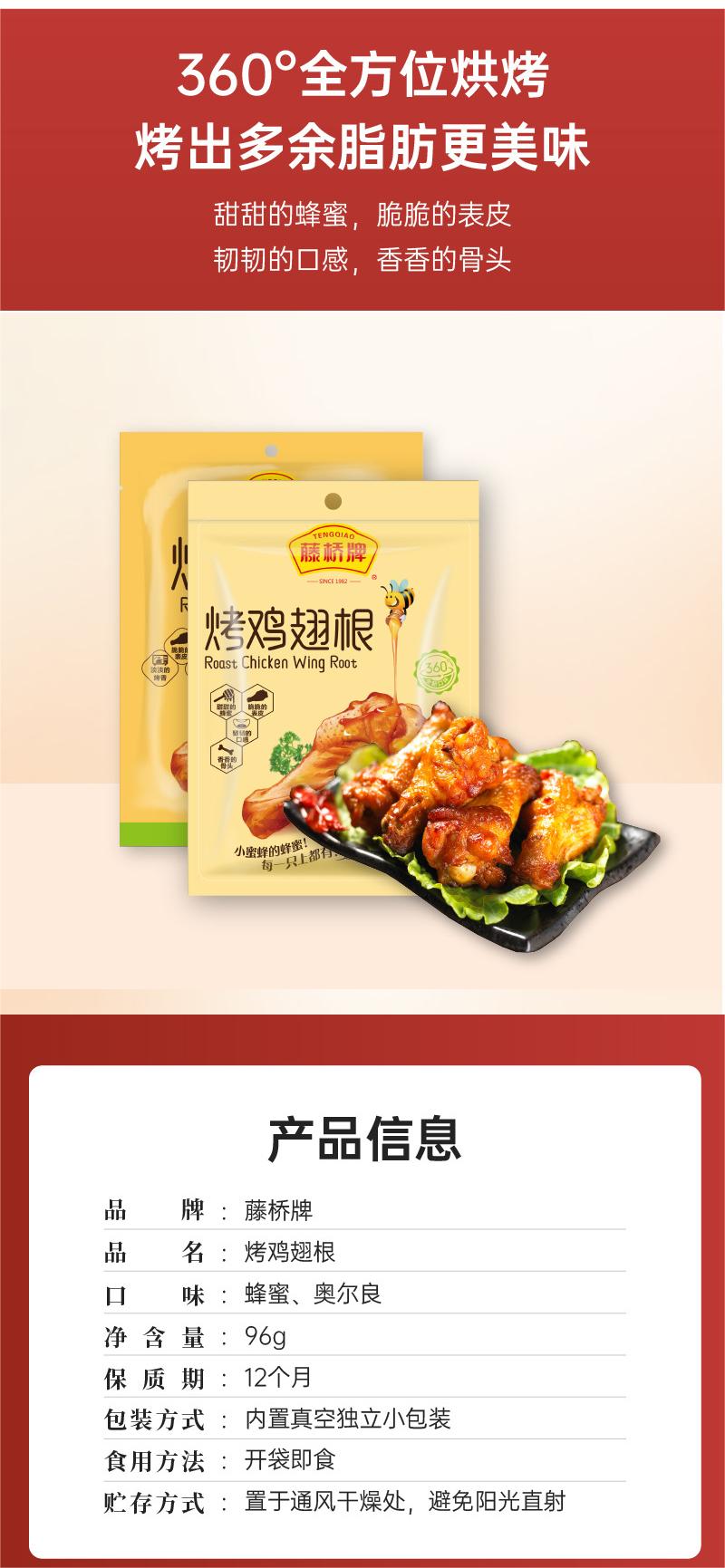【好吃不腻!藤桥烤鸡翅根】鲜嫩多汁,口感鲜美,满口醇香,肉质鲜美,秘zhi小鸡腿,小吃即食休闲,肉类零食