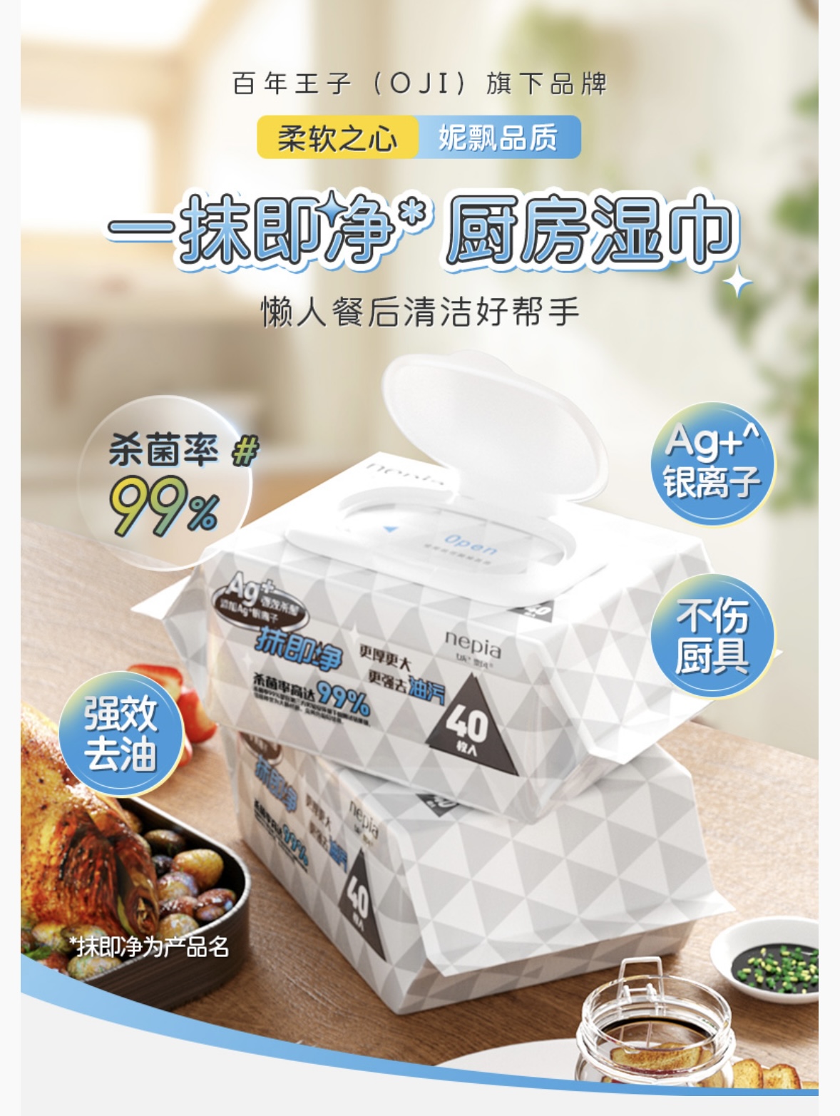 妮飘卫生湿巾40抽*4(厨房专用)