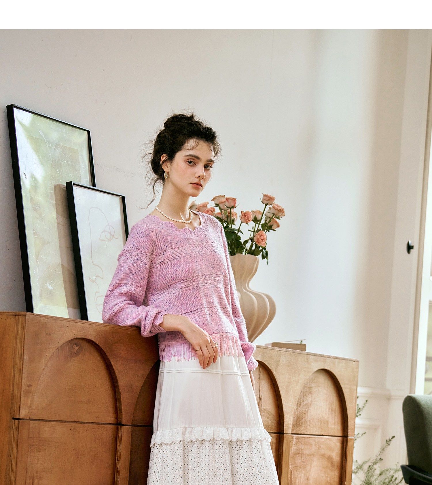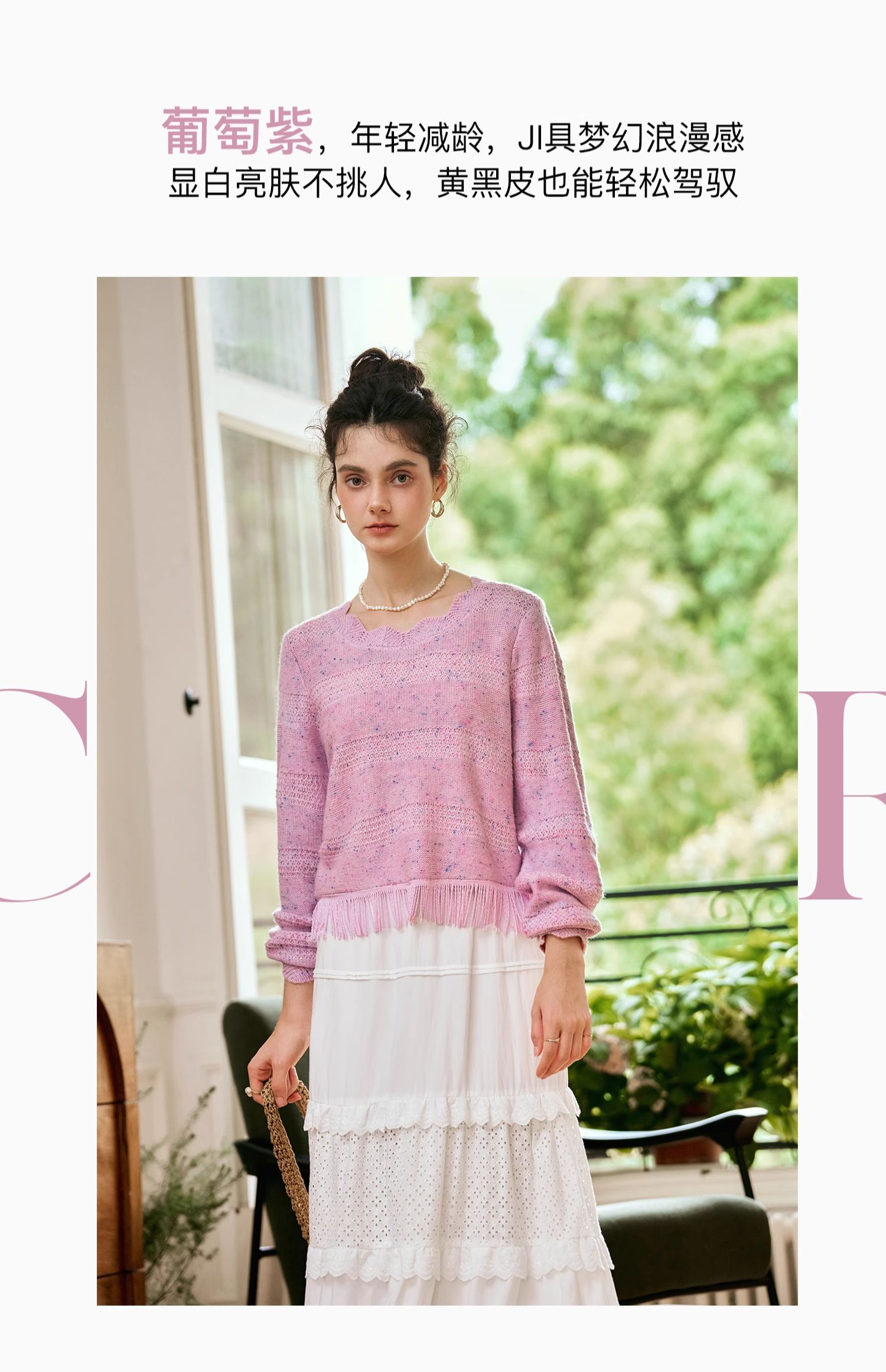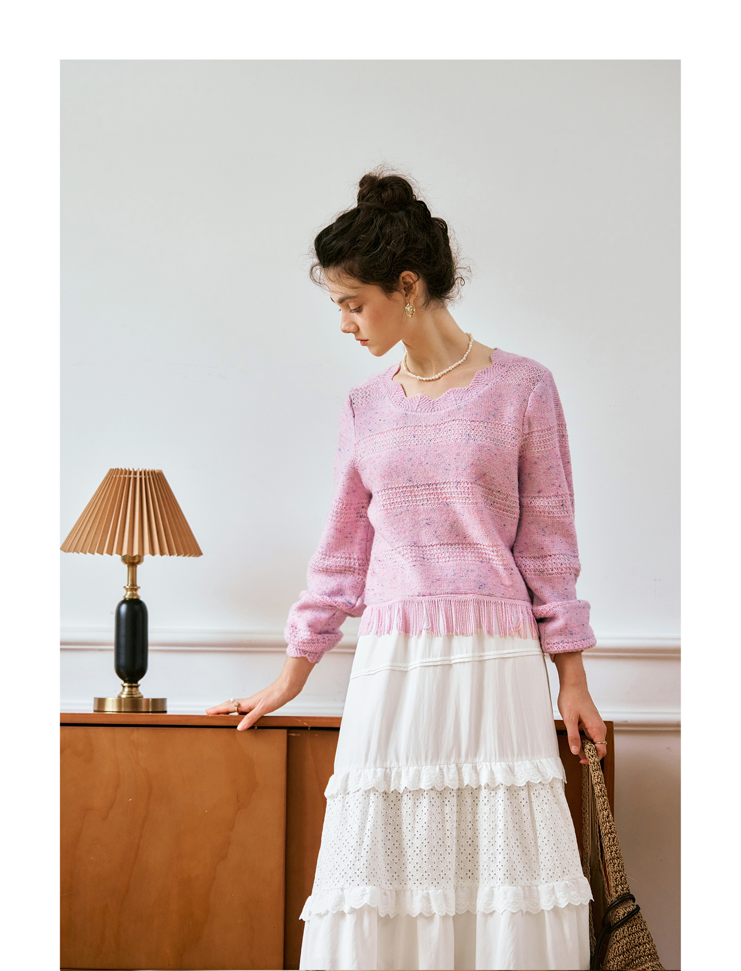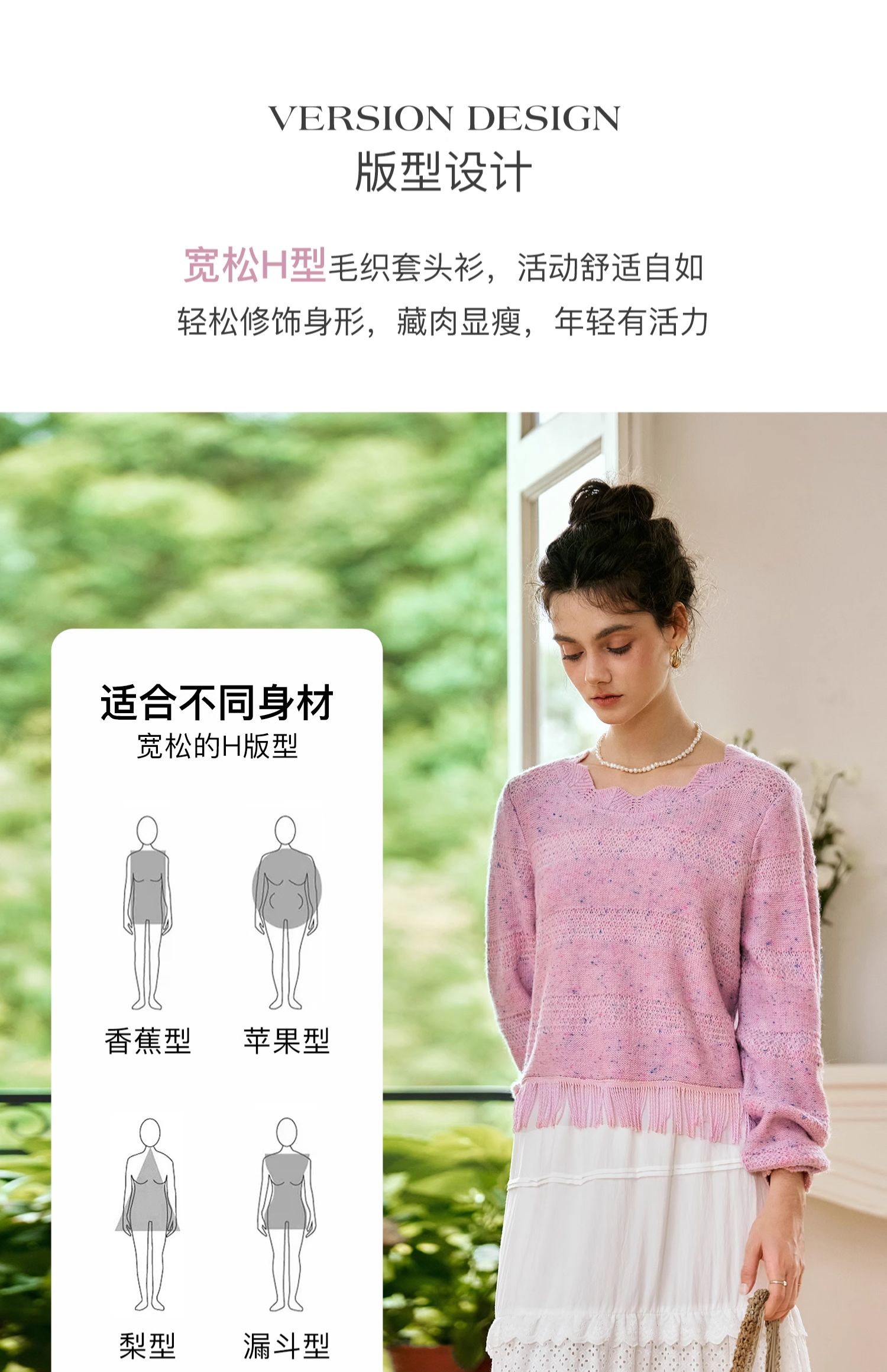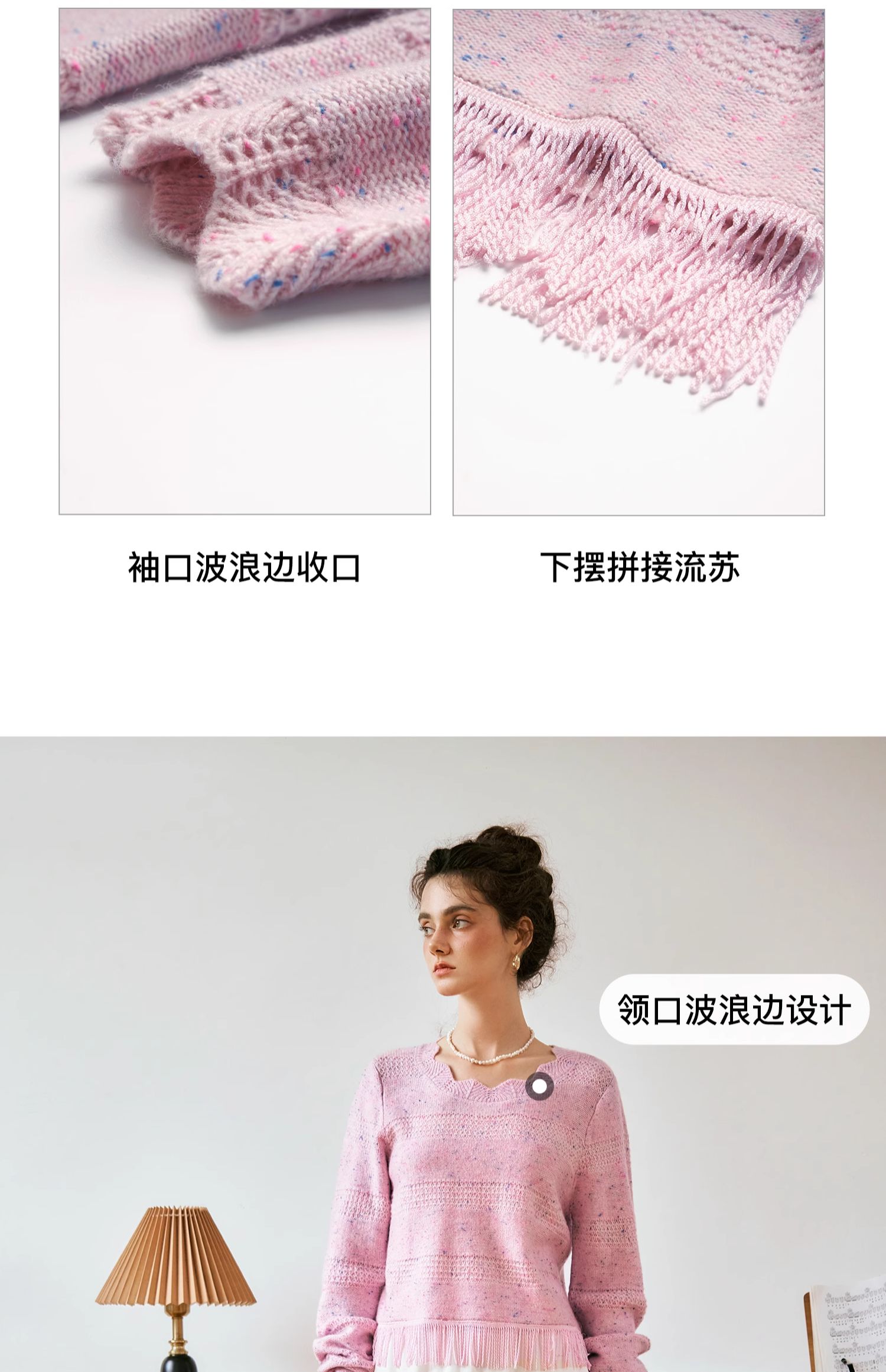 OLrain欧芮儿法式套头毛衣女秋季2024年新款浪漫流苏宽松上衣