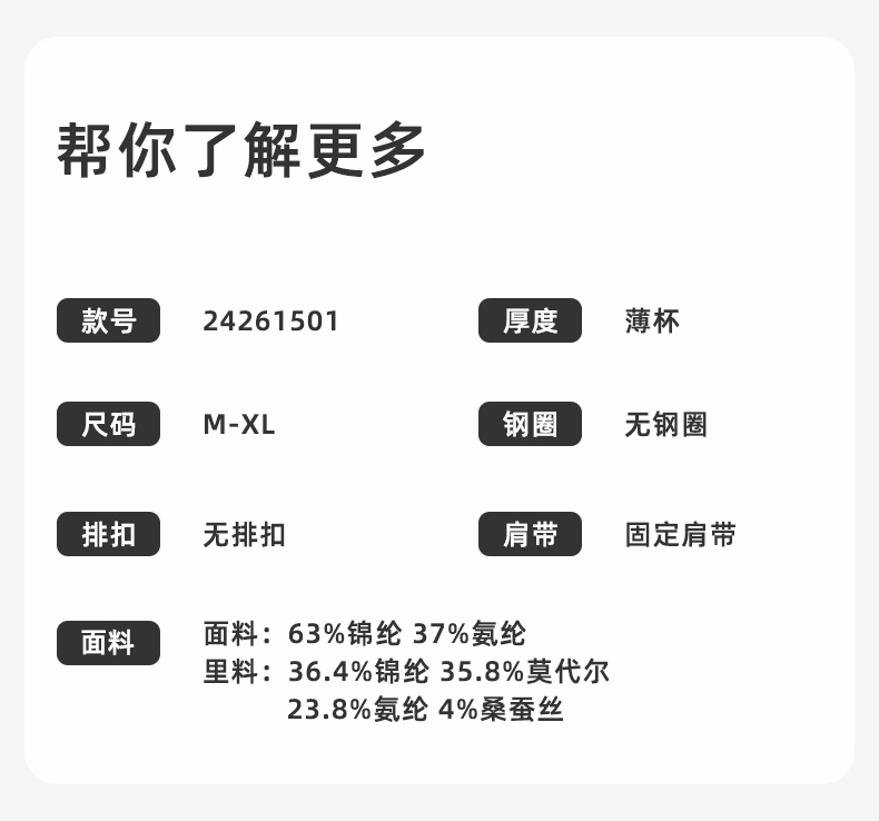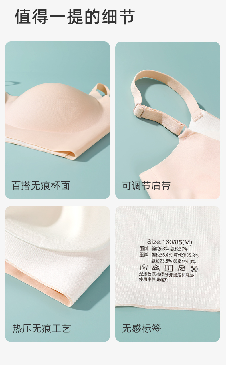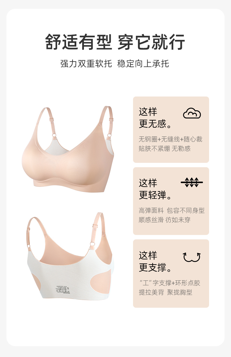 熳洁儿 女士内衣裸感无痕文胸舒适透气轻薄高弹软支撑不空杯背心式ABC杯可穿24261501