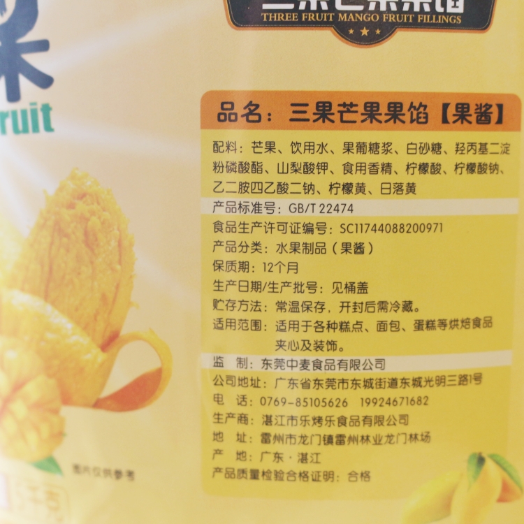 5kg 三果 芒果果粒馅 芒果果肉馅 芒果颗粒果酱慕斯蛋糕芒果夹心果酱