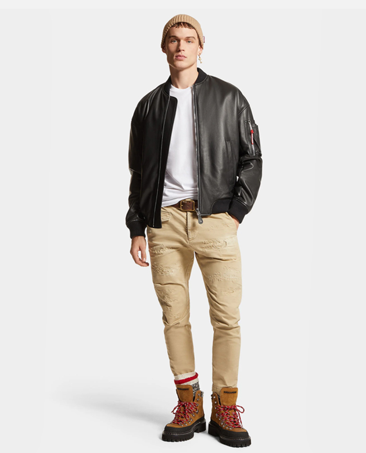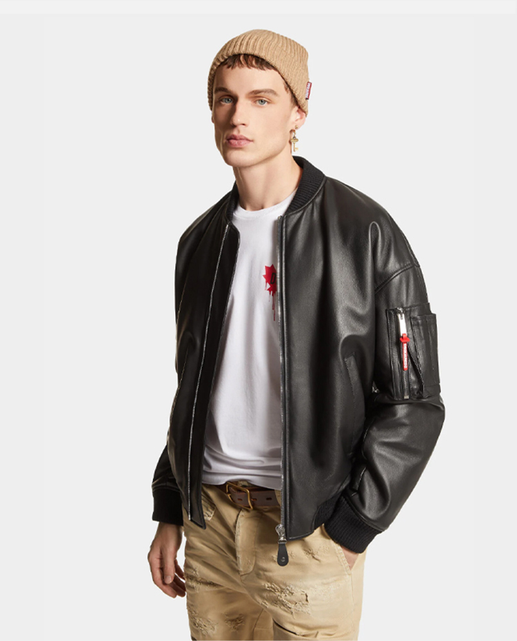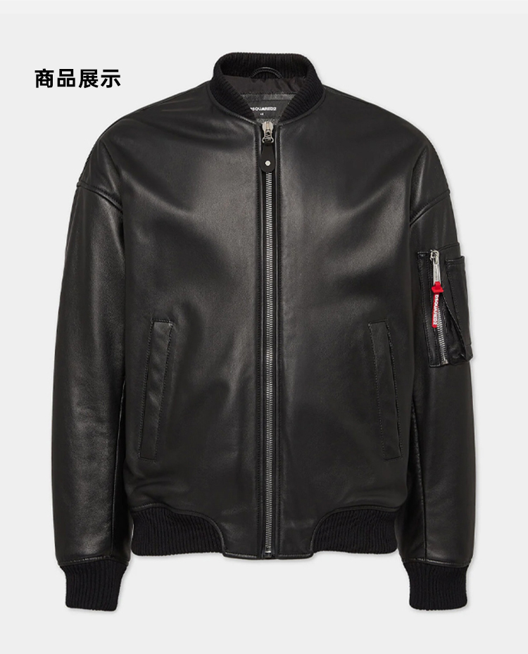 DSQUARED2 男士皮革飞行员夹克外套 黑色 S74AM1502 SY1602 900