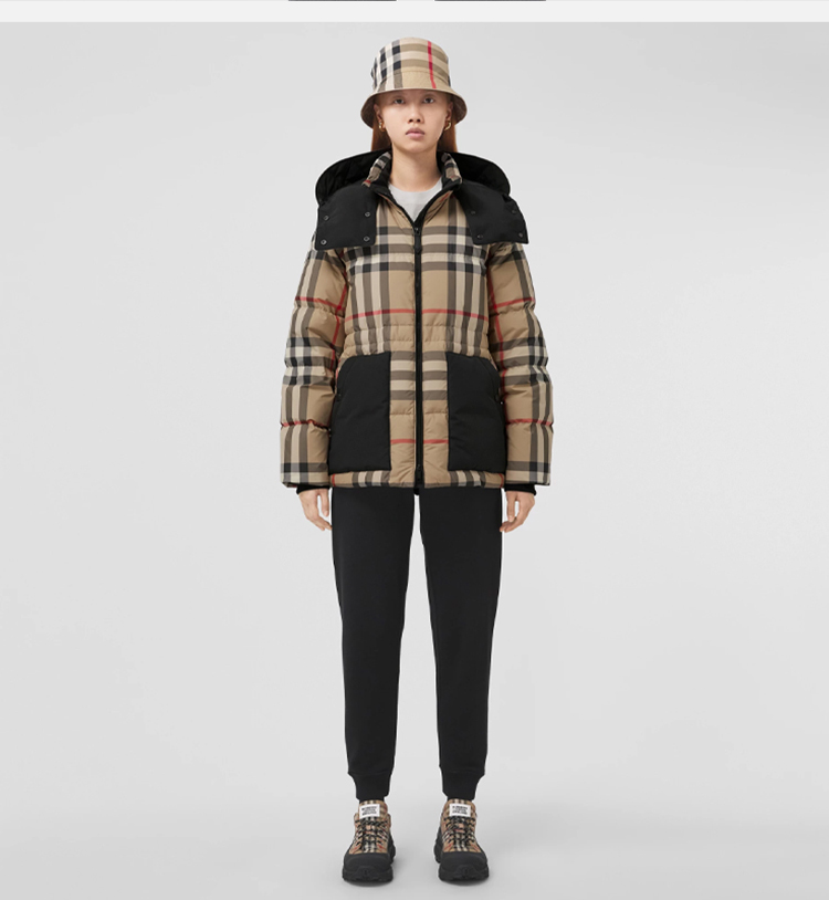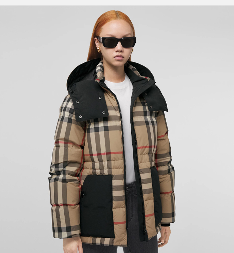 BURBERRY 巴宝莉 女士可拆卸连帽格纹羽绒服 格子 8059094 A7028