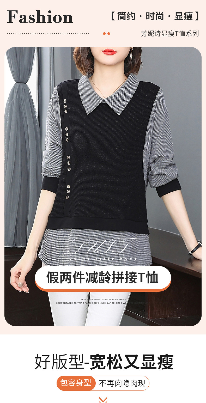 春秋假两件上衣女时尚洋气2025春款女装新款妈妈长袖t恤打底衫女