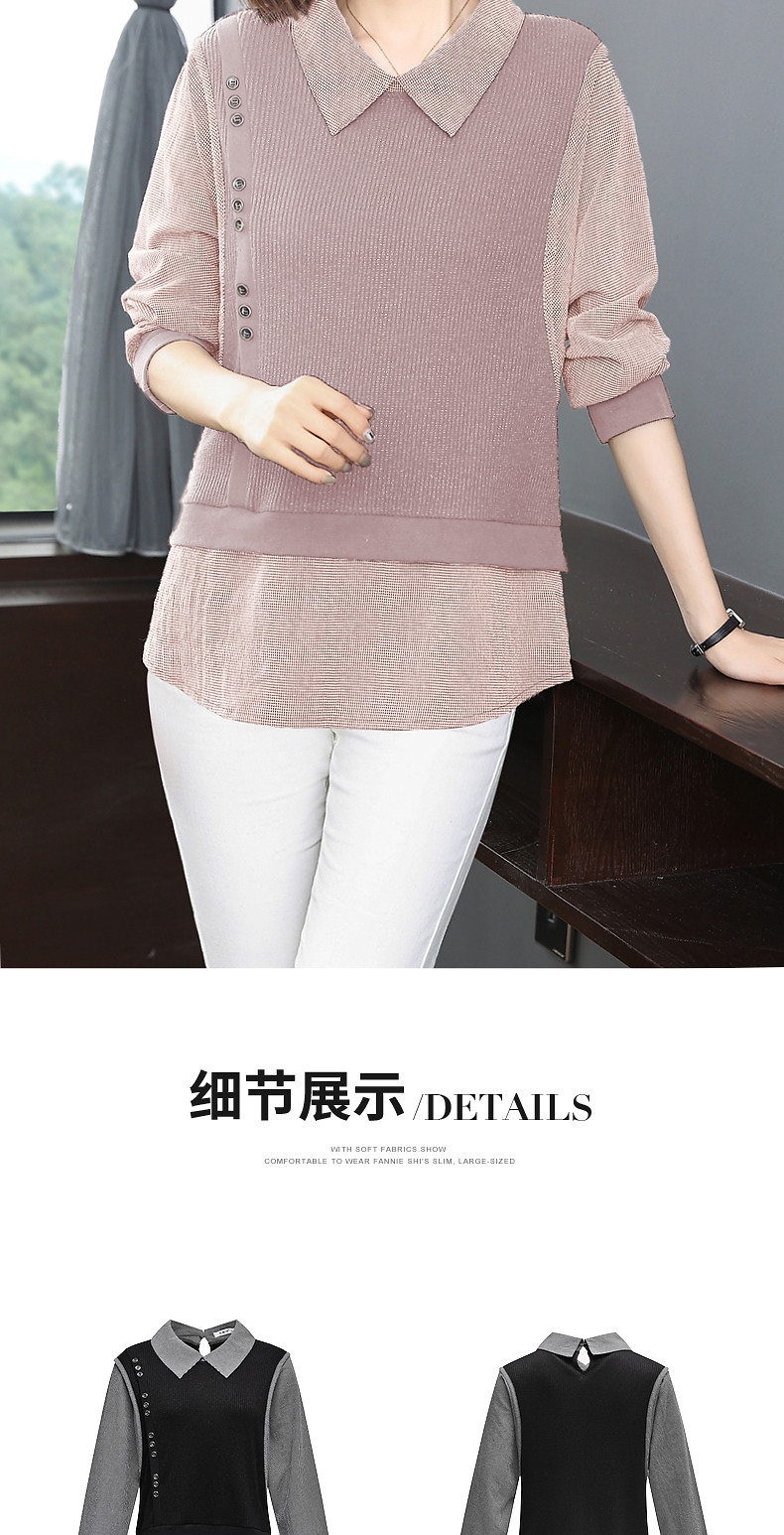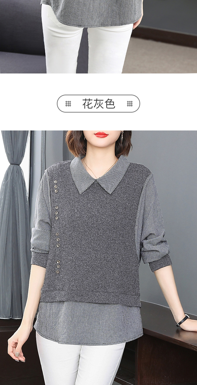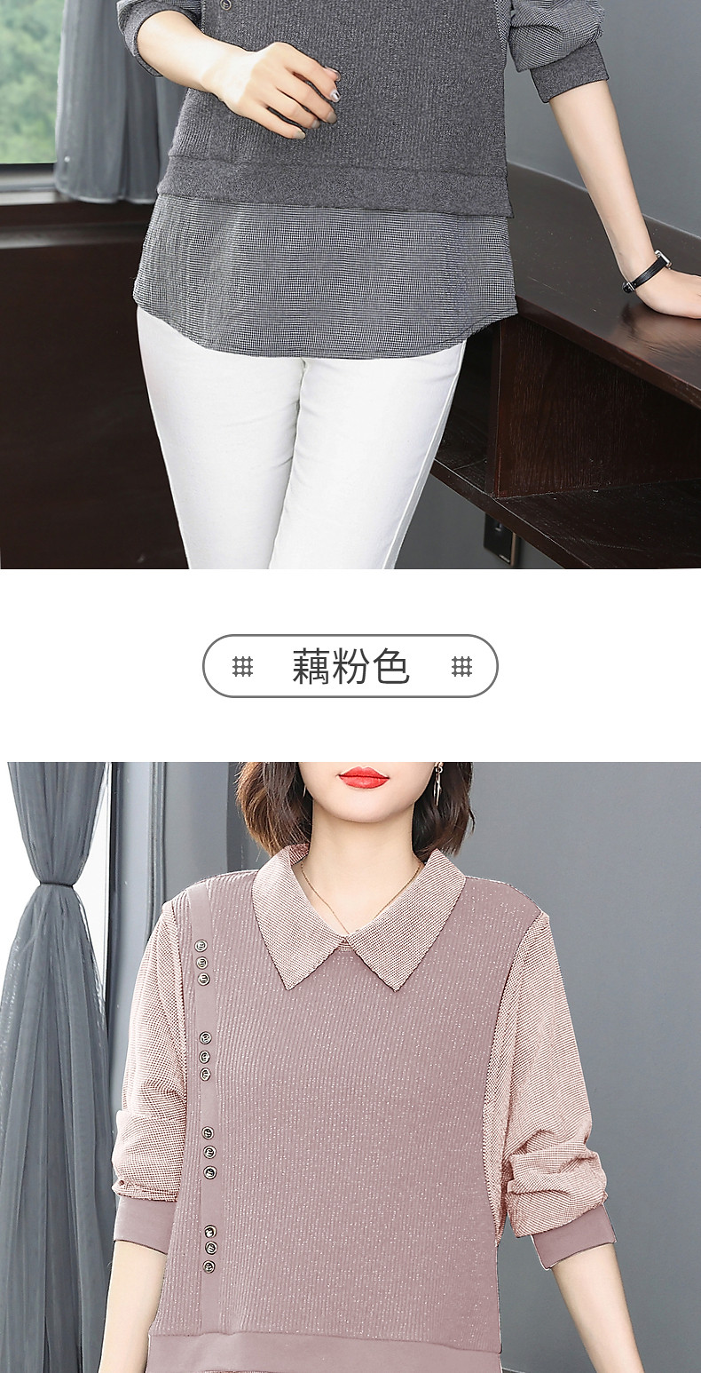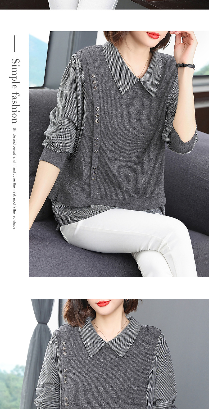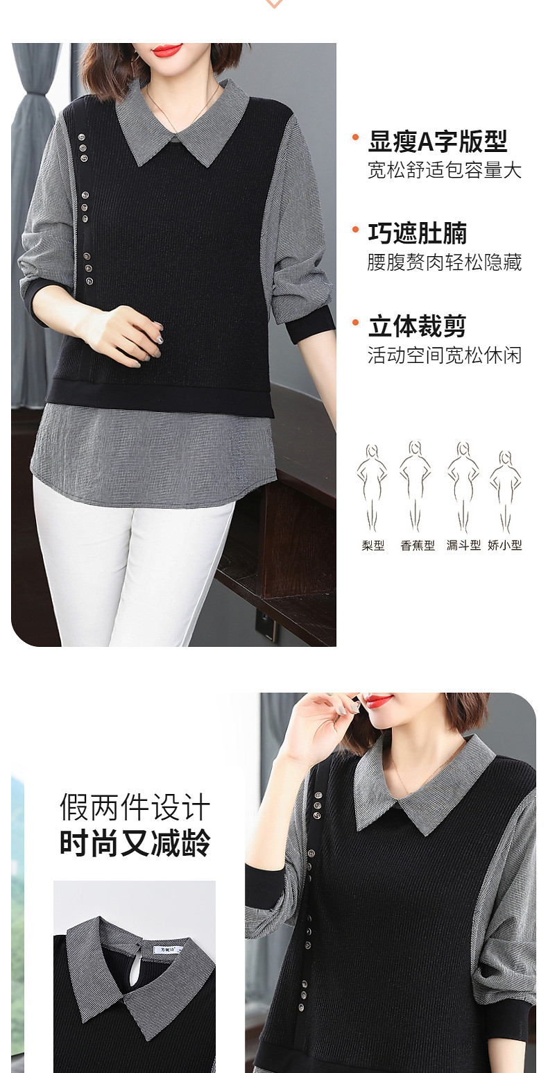 翻领女t恤长袖秋季新款上衣2026年春秋款大码中年妈妈纯棉打底衫