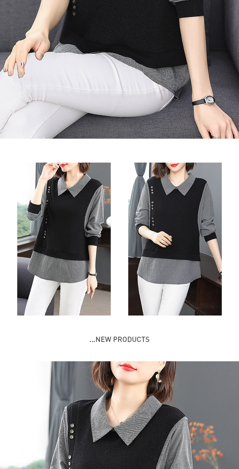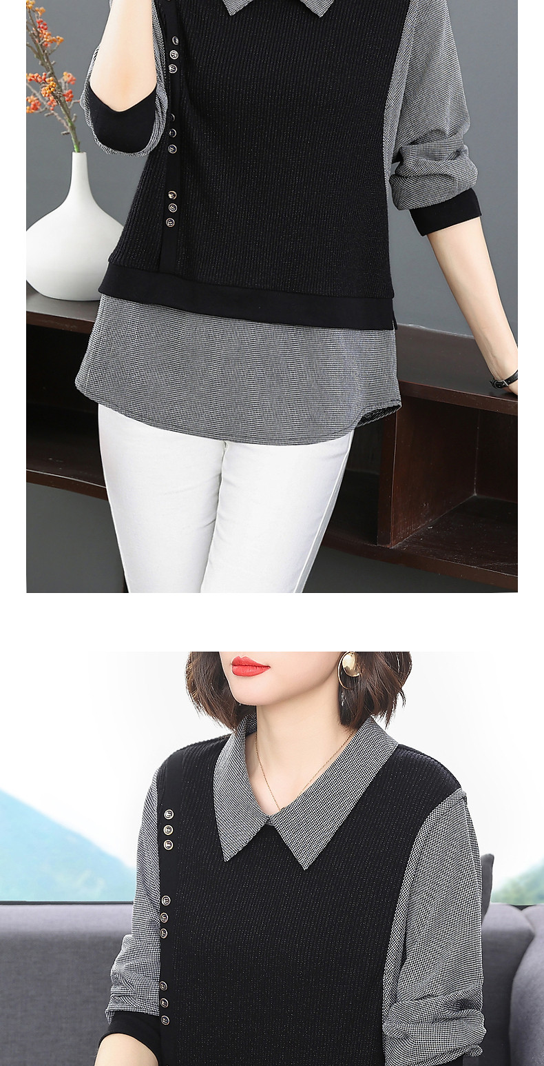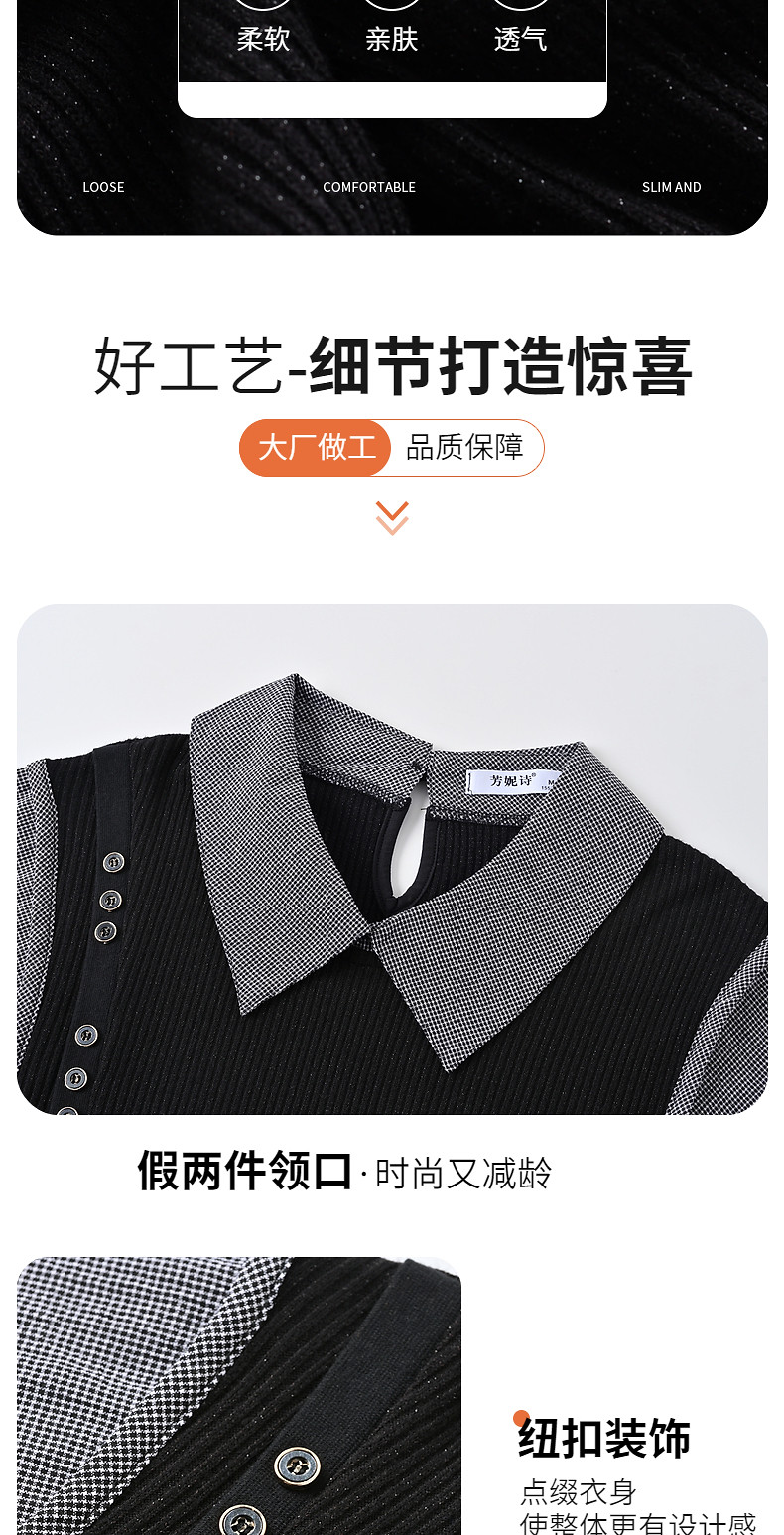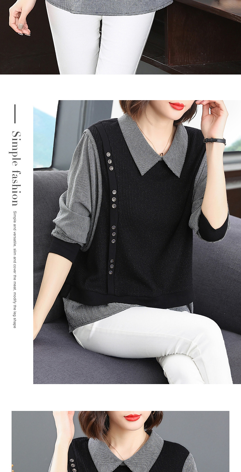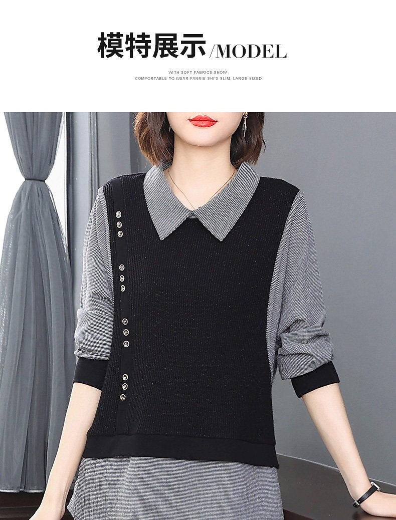 翻领女t恤长袖秋季新款上衣2026年春秋款大码中年妈妈纯棉打底衫