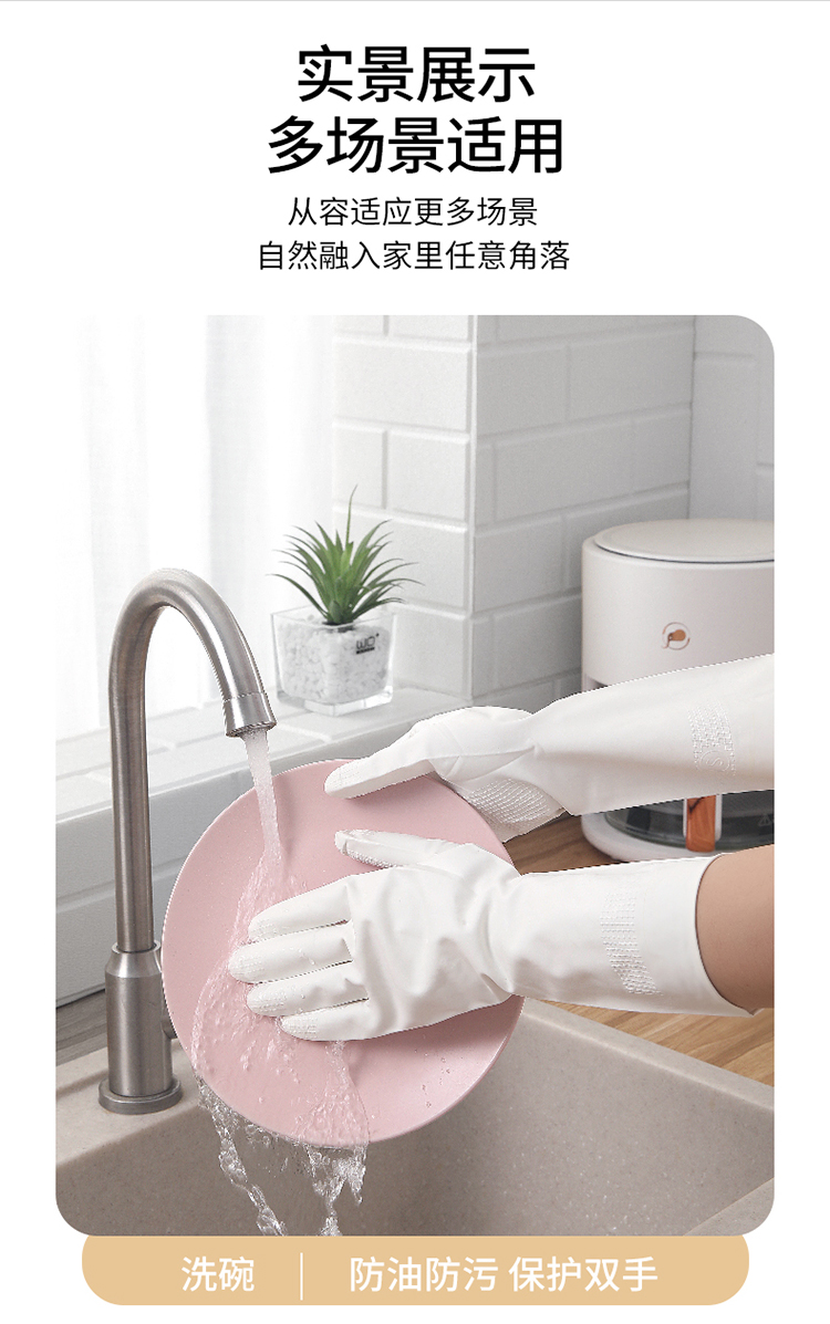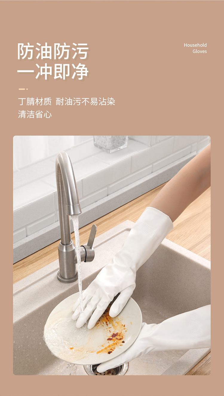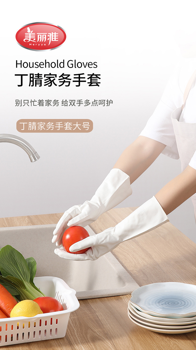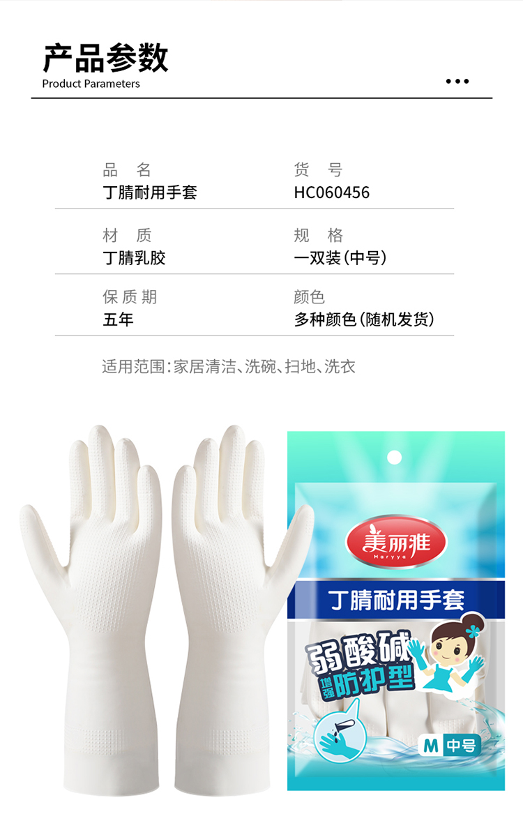美丽雅丁腈手套 橡胶洗碗洗衣洗菜多功能家务加厚丁晴清洁手套1双 颜色随机