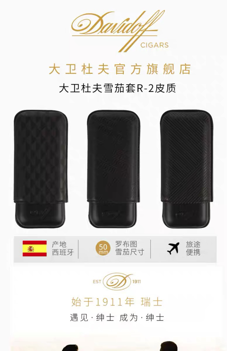 Davidoff/大卫杜夫雪茄保湿皮套2支装罗布图雪茄盒便携商务礼品