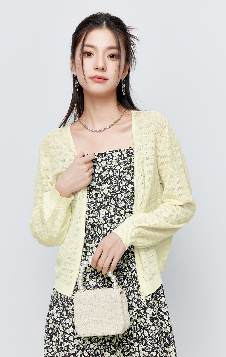 【积分换购不退货】【特惠不退货】诗凡黎v领针织开衫2024夏新款显瘦空调罩衫3F4230961