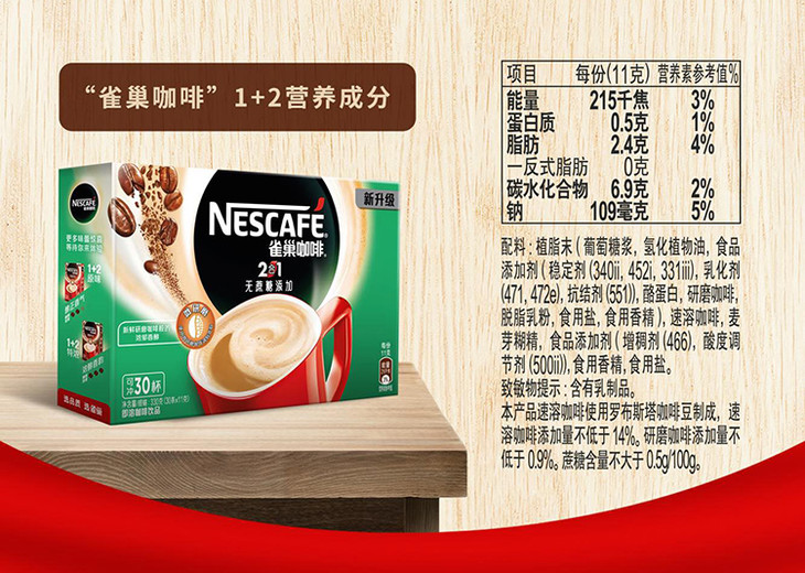 雀巢(Nestle)咖啡 速溶 2合1 无蔗糖 微研磨 冲调饮品 24条*11g 新老包装随机发