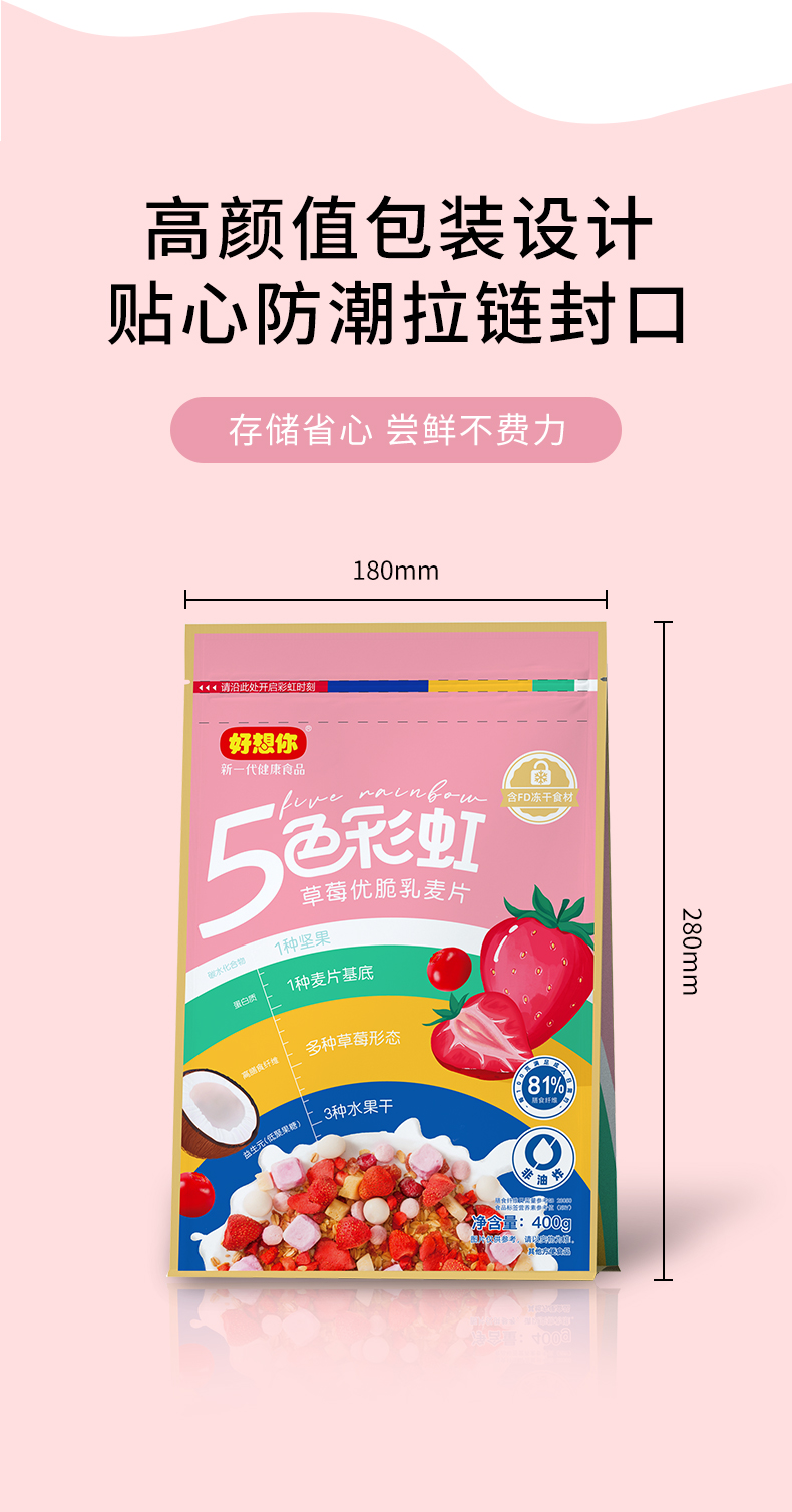 草莓优脆乳 400g/袋 水果麦片 坚果 红枣 酸奶 果粒 早餐 好想你