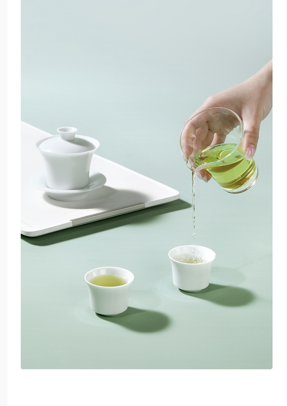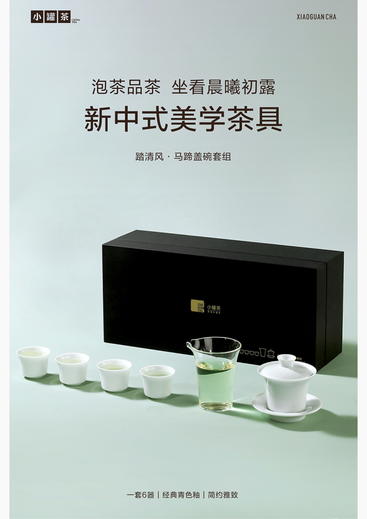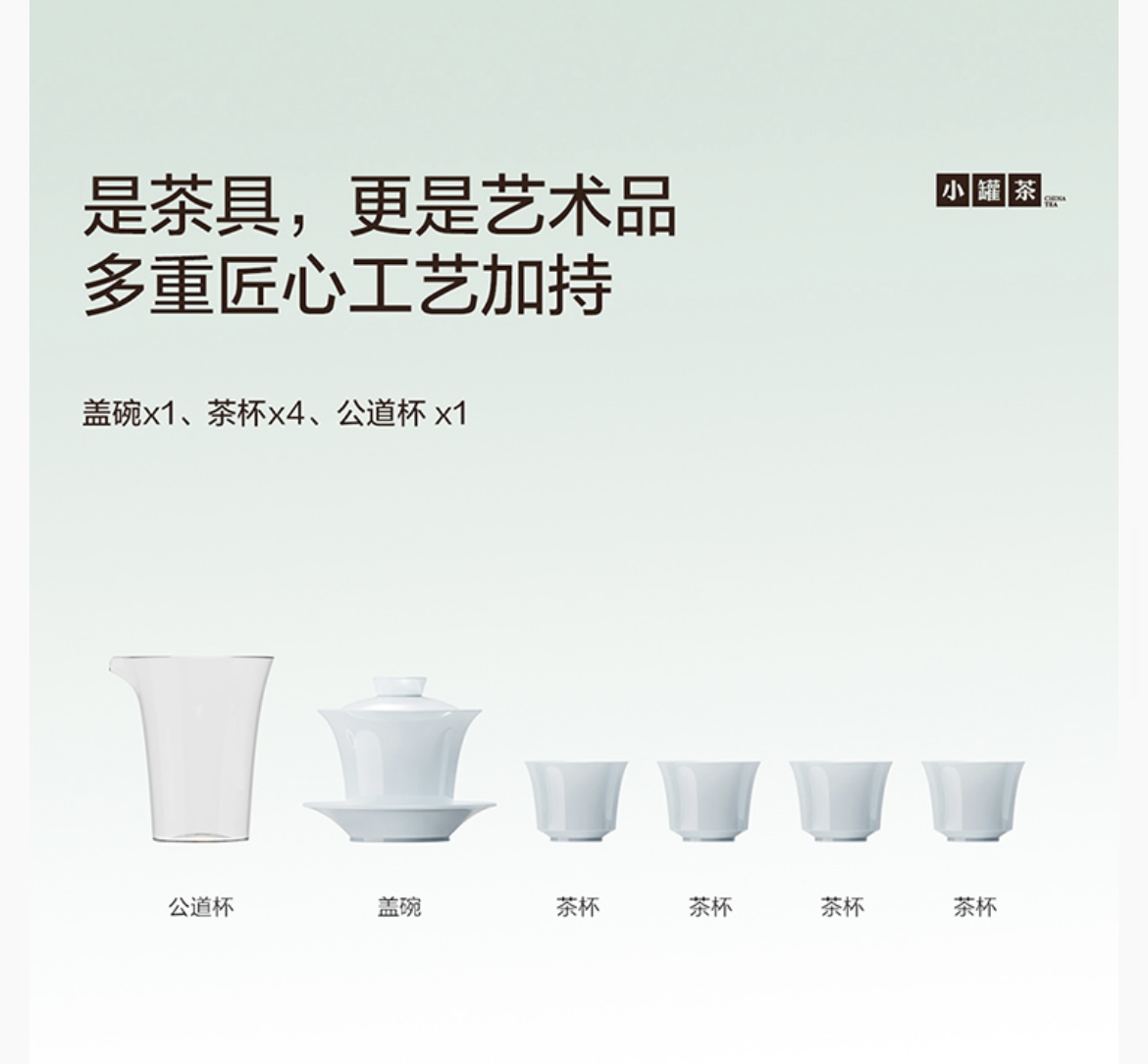 小罐茶爆款茶具:踏清风·马蹄盖碗套组内含盖碗x1、茶杯x4、公道杯 x1送礼礼盒大气