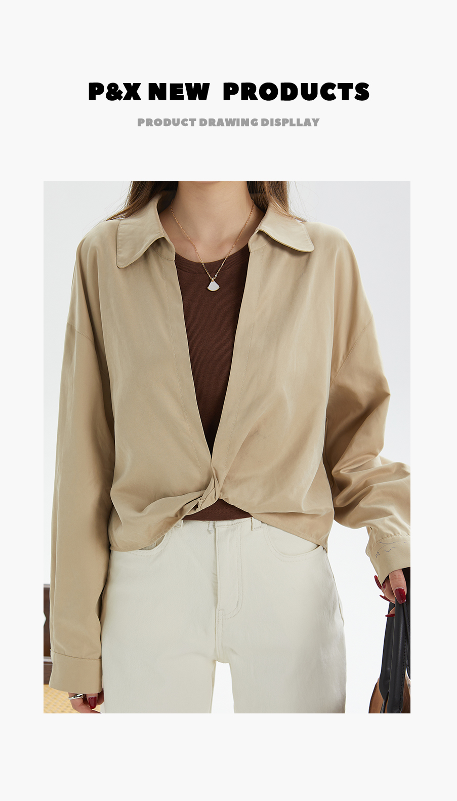 P&X设计师女装秋季通勤简约衫衣两件套上衣 824315286 卡其/咖
