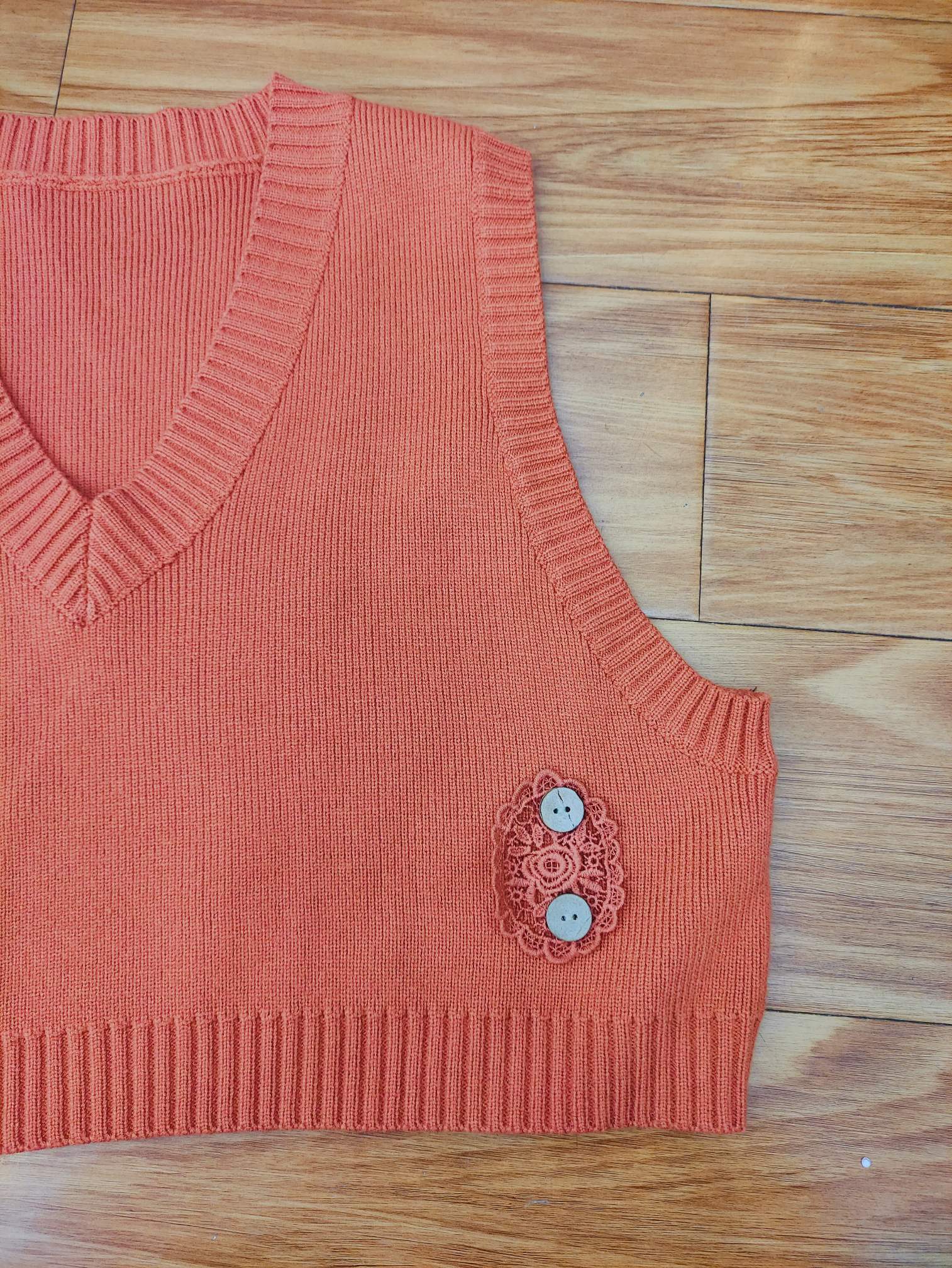 3890-3# 森系毛衣背心 颜色:桔红 尺码:均码