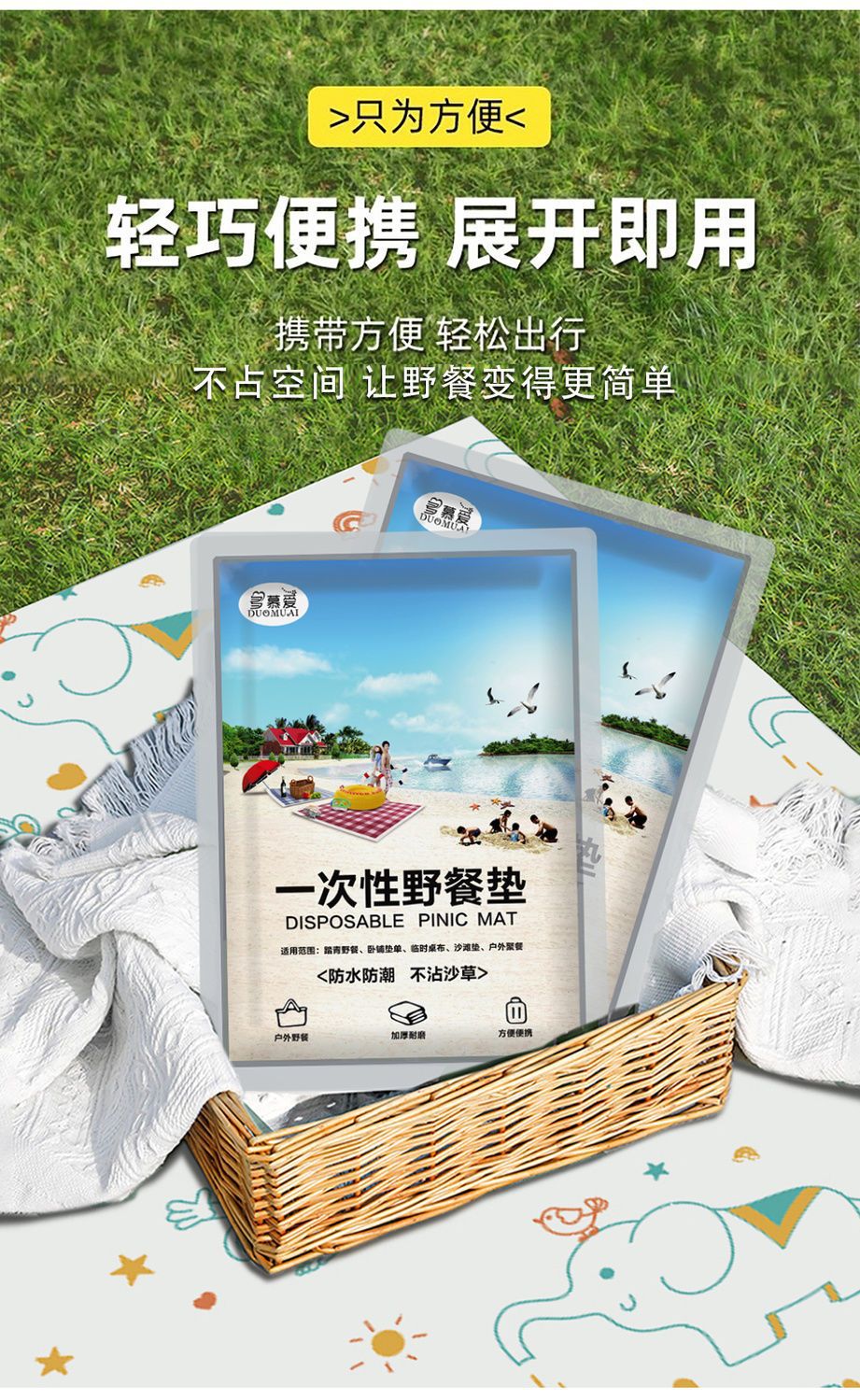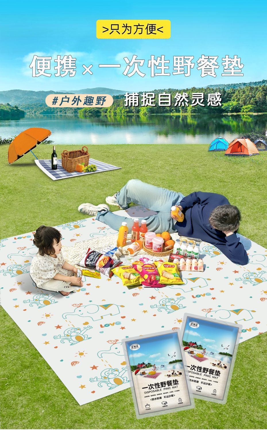【防水防潮!不沾花草】一次性野餐垫隔脏户外露营防潮垫加厚双人防水防油沙滩垫草坪野营垫子。