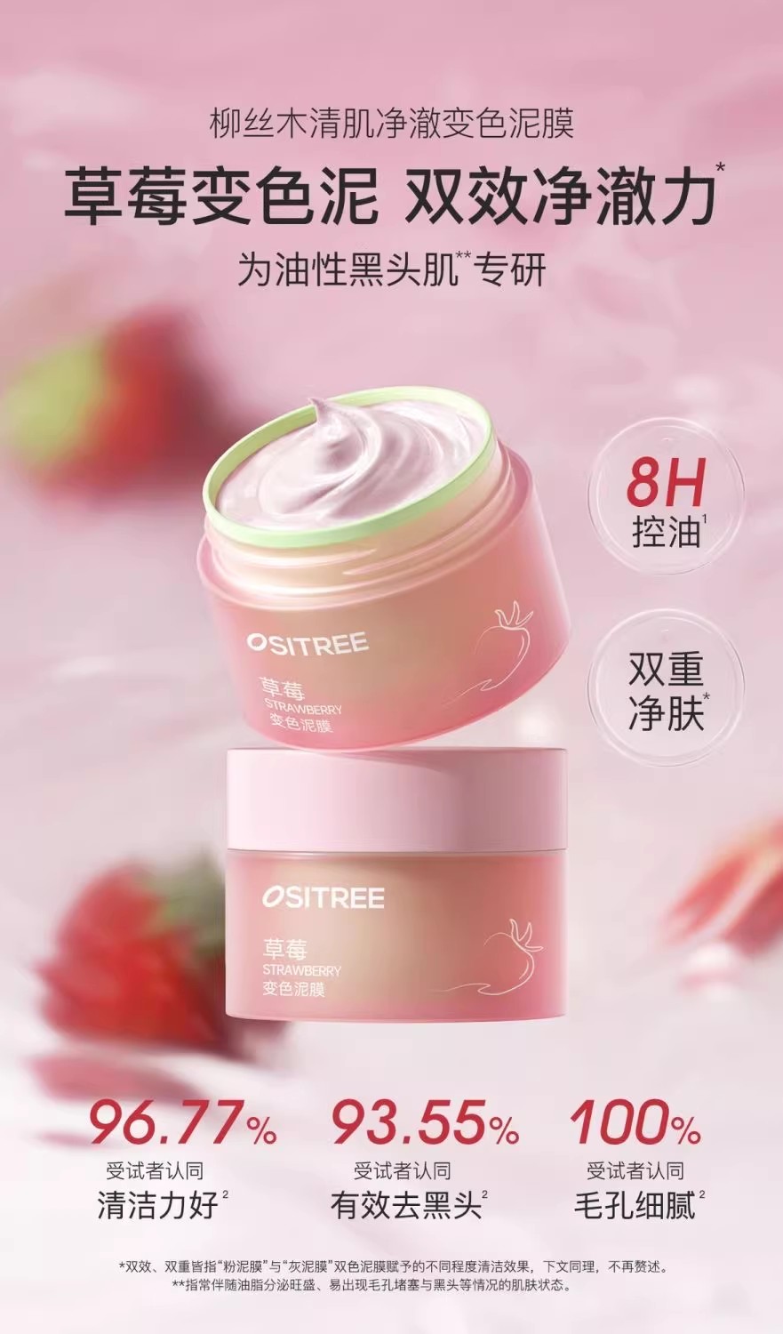 柳丝木清肌净澈变色泥膜控油保湿滋润肌肤不刺激深层清洁毛孔黑头