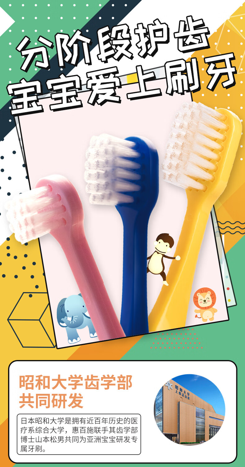 惠百施婴幼儿乳牙刷0.5-3岁彩标/117953 专为亚洲宝宝设计颜色随机